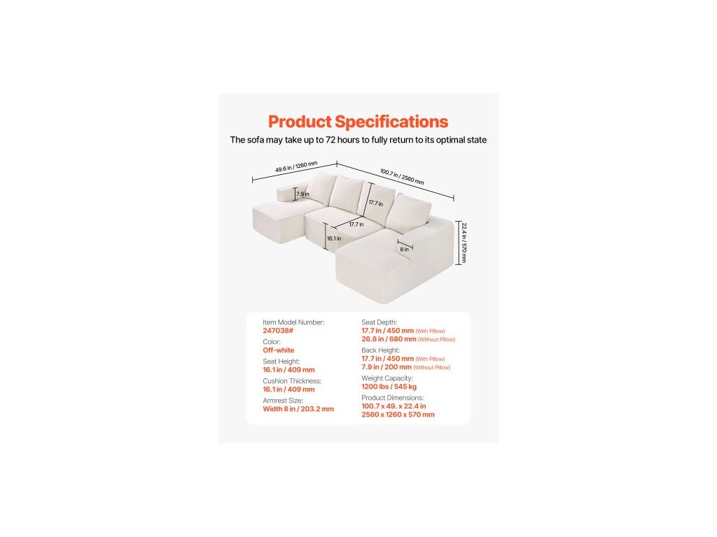 Tloušťka polštáře: 409 mm,Rozměry lenošky: 1260 x 750 x 570 mm,Velikost područky: Šířka 203,2 mm,Výška opěradla: 450 mm (s polštářem), 200 mm (bez polštáře),Nosnost: 545 kg,Hloubka sedáku: 450 mm (s polštářem) Polštář), 770 mm (bez polštáře), Číslo modelu položky: 247038#, Výška sedáku: 409 mm, Rozměry výrobku: 2560 x 1260 x 570 mm