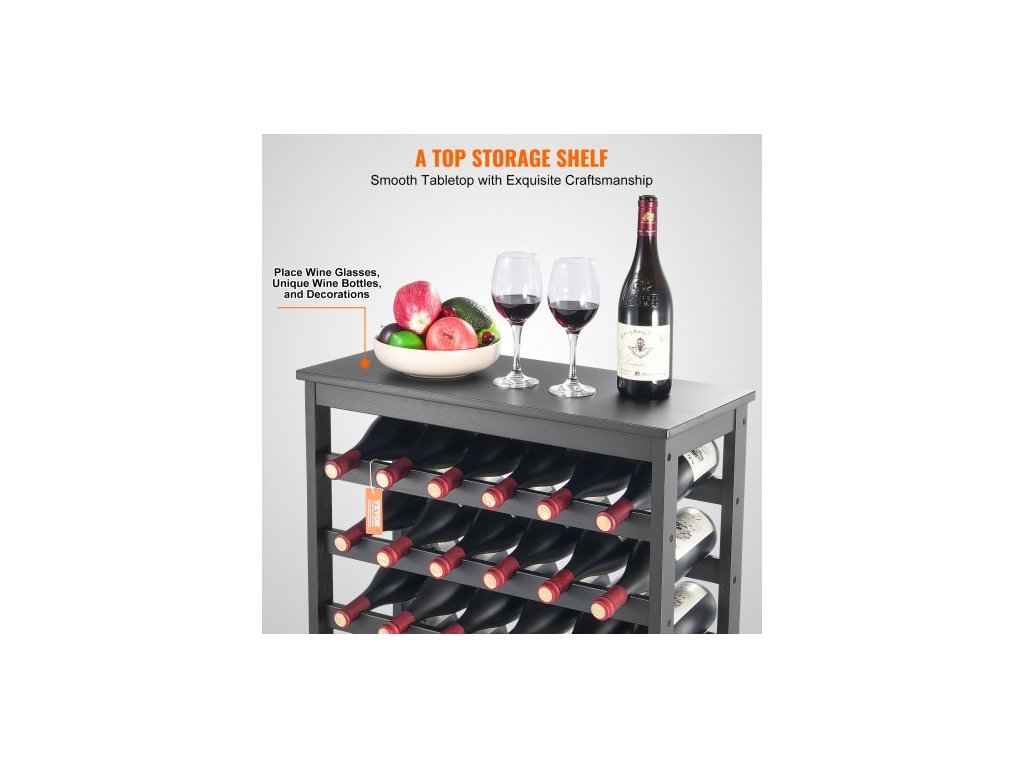 Modulární stojan na víno na 42 lahví, 7patrový masivní bambusový dřevěný úložný regál s deskou stolu, volně stojící držák na víno na podlahu, police proti kývání do kuchyně, baru a sklepa (černý)