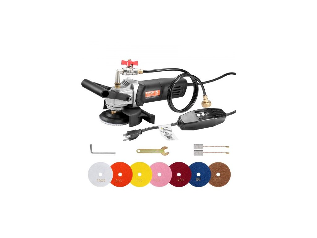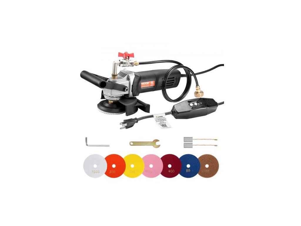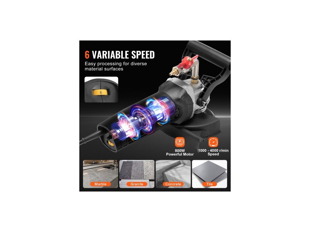Mokrá leštička 800W, bruska na beton 4" s 6 nastavitelnými otáčkami a 7 lešticími sadami, stroj na mokré broušení mramoru, žuly, kamene, skály a dlaždic, vybavený jističem GFCI (1000 - 4000 ot./min)