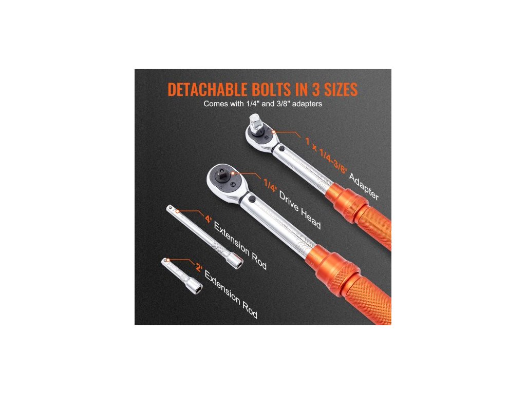 Momentový klíč , 0,6 cm Drive Click Momentový klíč 20-200in.lb/3-23nm, sada nastavitelných momentových klíčů s oboustranným nastavením, mechanické stupnice s dvojitým rozsahem Sada momentových klíčů s adaptéry a prodlužovací tyčí