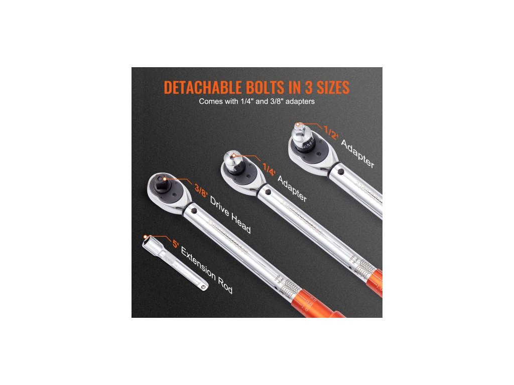 Momentový klíč , 1,3 cm pohon Click, sada nastavitelných momentových klíčů s oboustranným nastavením, mechanické stupnice s dvojitým rozsahem, sada momentových klíčů s adaptéry a prodlužovací tyčí