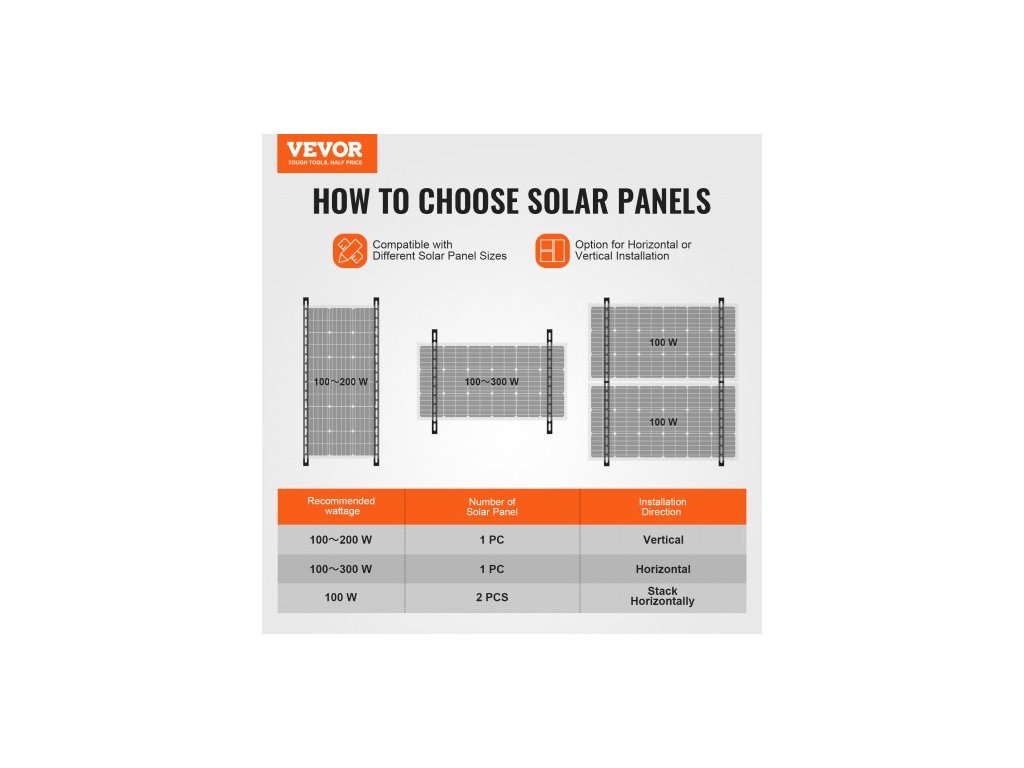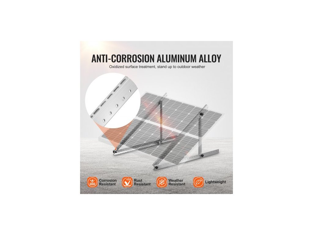 Montážní konzole pro solární panely 41 palců, nastavitelné náklonové konzole od 0 do 90°, podporují solární panely 100–300 W, lehké hliníkové konzole se skládacími naklápěcími nohami pro obytné vozy, střechy, lodě a mimosíťové instalace.