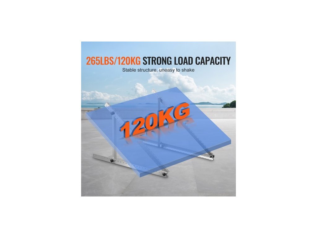 Montážní konzole 41 palců pro solární panely, nastavitelné náklonové konzole 0 až 90° podporují solární panely 100–300 W, lehké hliníkové konzole se skládacími naklápěcími nohami pro obytné vozy, střechy, lodě a offline instalace