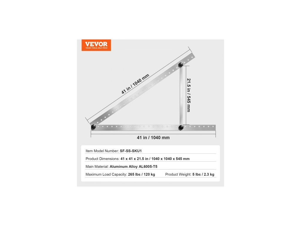 Číslo modelu položky: SF-SS-SKU1,Maximální nosnost: 120 kg,Hmotnost výrobku: 2,3 kg,Rozměry výrobku: 1040 x 1040 x 545 mm,Hlavní materiál: Hliníková slitina AL6005-T5