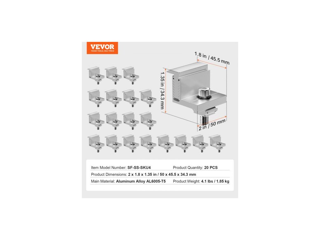 Množství produktu: 20 ks,Číslo modelu položky: SF-SS-SKU4,Hmotnost produktu: 4,1 lbs / 1,85 kg,Rozměry produktu: 2 x 1,8 x 1,35 palce / 50 x 45,5 x 34,3 mm,Hlavní materiál: Hliníková slitina AL6005-T5