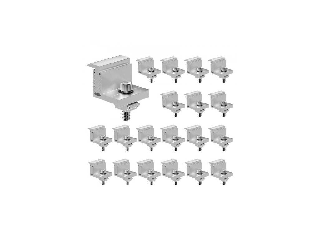 Montážní konzole pro solární panely ve tvaru Z, nastavitelné koncové svorky pro solární panely 35-50 mm, lehké eloxované hliníkové konzole pro montáž solárních panelů ve tvaru Z pro obytné vozy, karavany, lodě, stěny, střechy (20 ks)