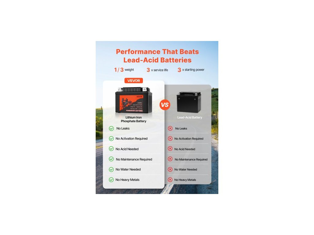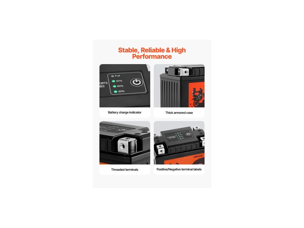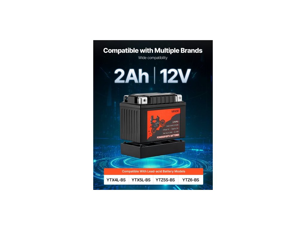 Motocyklová baterie , 12V 2Ah, LiFePO4 lithiová přednabíjená baterie Powersports, bezúdržbová a vysoce výkonná, kompatibilní s čtyřkolkami, motocykly, vodními skútry, skútry, UTV a dalšími
