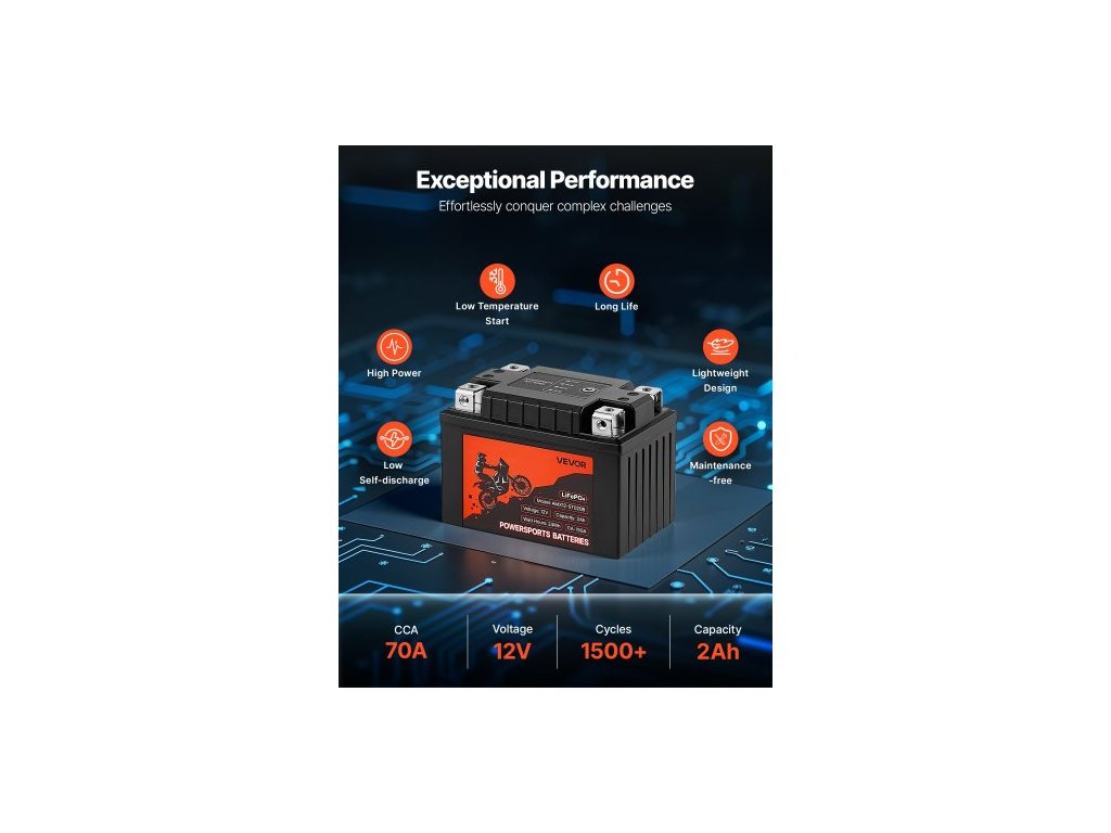 Motocyklová baterie , 12 V 2 Ah, LiFePO4 lithiová přednabíjecí baterie Powersports, bezúdržbová a vysoce výkonná, kompatibilní se čtyřkolkami, motocykly, vodními skútry, skútry, UTV a dalšími