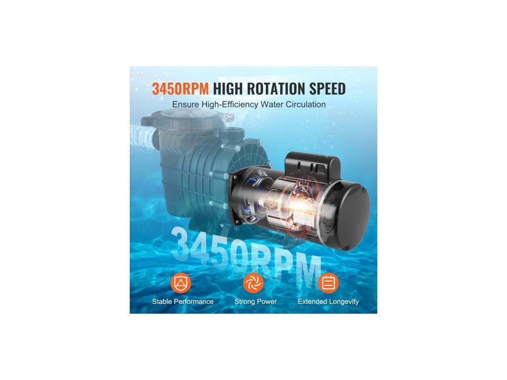 Bazénový čerpací motor 1 HP, rám 56Y, 115 V (9 A) / 230 V (4,5 A), 3450 ot./min, 60 Hz, servisní faktor 1,25, kondenzátor 90 uF / 250 V, otáčení proti směru hodinových ručiček, náhradní motor s čtvercovou přírubou