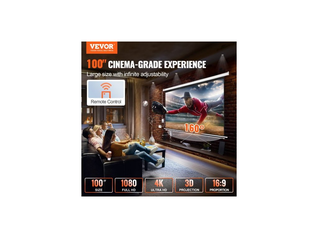 Projekční plátno s motorem, 100 palců, 16:9 4K 1080 HD, elektrické projekční plátno, automatické projekční plátno s dálkovým ovládáním, nástěnné filmové plátno pro rodinné domácí kino a kancelář