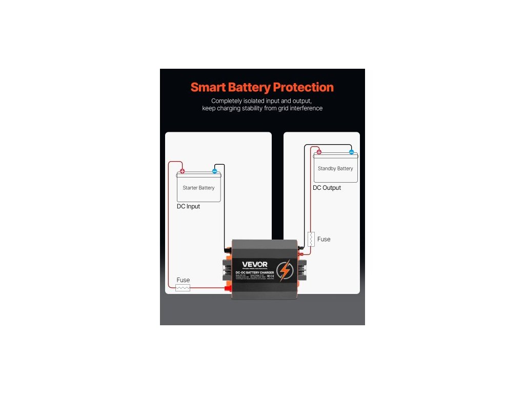 Nabíječka baterií 12V 40A DC-DC, 500W, integrovaná nabíječka baterií pro olověné, lithiové, AGM, gelové a zaplavené baterie, inteligentní vícestupňové nabíjení, pro obytné vozy, užitková vozidla, lodě, jachty