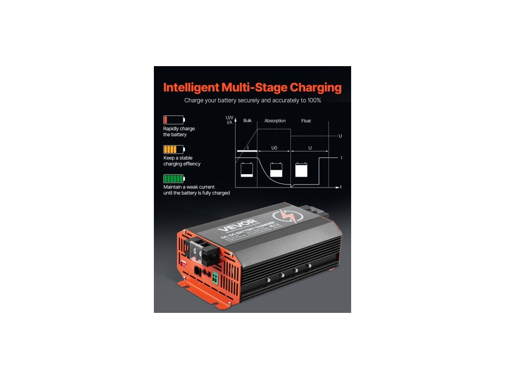 Nabíječka baterií 12V 60A DC-DC, 750W, integrovaná nabíječka pro olověné, lithiové, AGM, gelové a zaplavené baterie, inteligentní vícestupňové nabíjení, pro obytné vozy, užitková vozidla, lodě a jachty