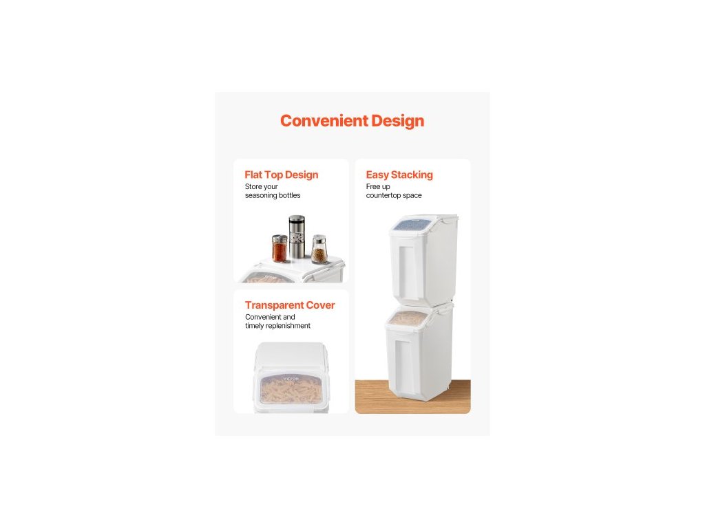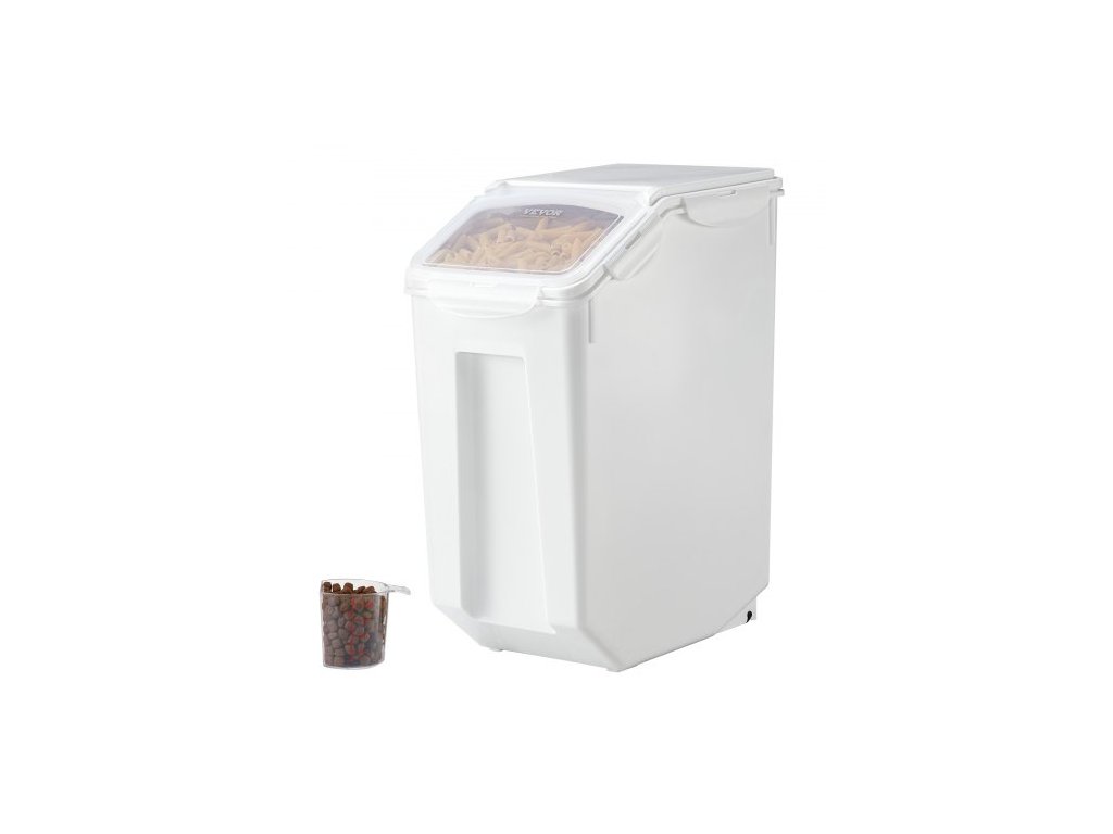 Nádoba na skladování rýže , objem 4,5 galonu/20 l, velký dávkovač krmiva pro psy, nádoba na kuchyňské ingredience, obiloviny, mouku, nádoby na krmivo pro domácí mazlíčky s kolečky, odměrka, vzduchotěsné víko, 1 balení