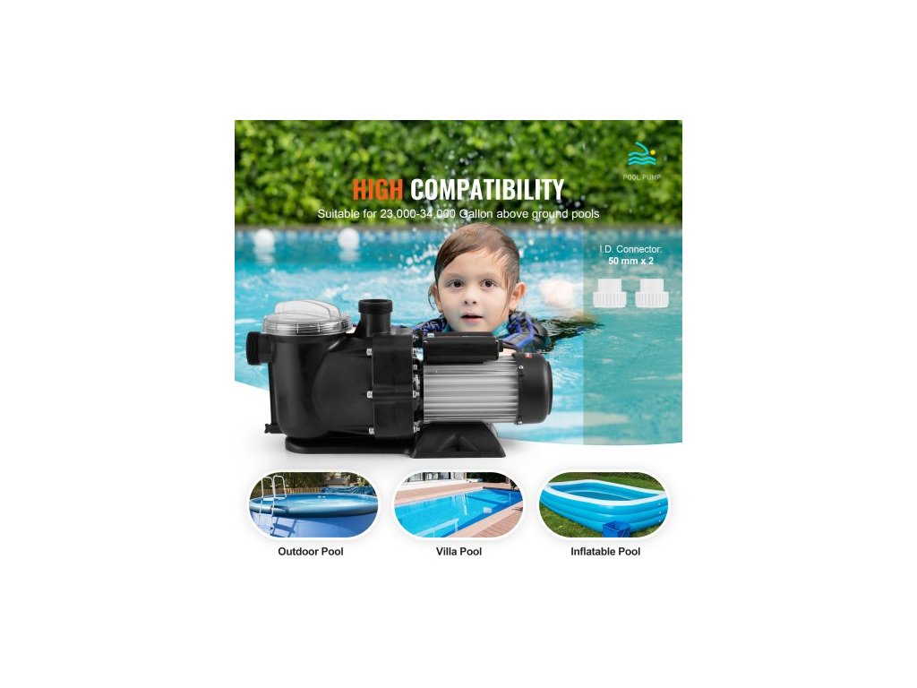 Nadzemní bazénové čerpadlo , 1118 W (1,5 HP), 378 l/min (100 GPM) max. průtok, jednorychlostní bazénové čerpadlo, 220 V, 2850 ot./min, max. výtlak 15 m, s filtračním košem, pro nadzemní bazény, vířivky a spa, certifikace UL