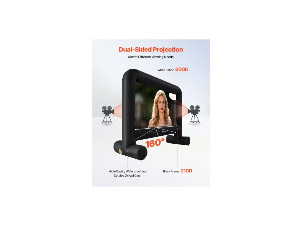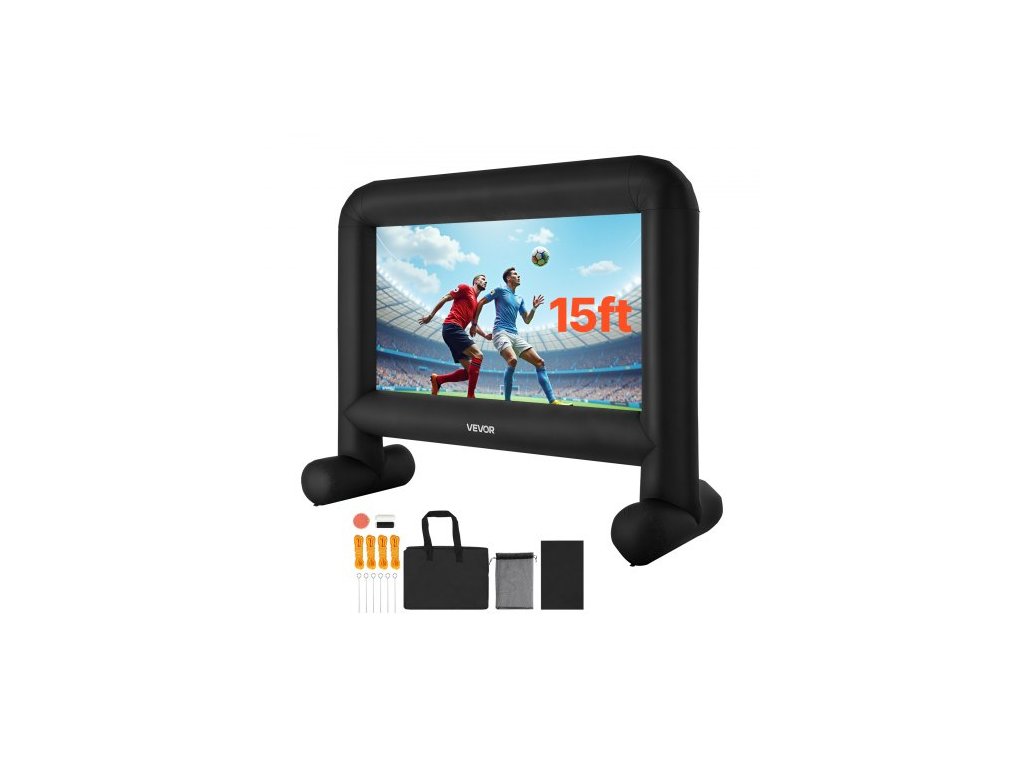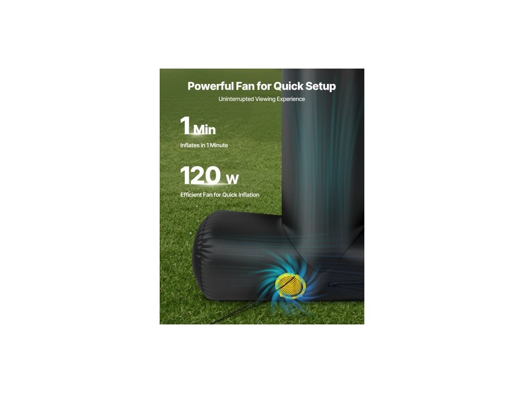 Nafukovací filmové plátno 15 stop, omyvatelné nafukovací projekční plátno z 600D s přenosným úložným vakem, snadno sestavitelný filmový projektor 16:9 pro venkovní použití na zahradu, domácí kino, tematickou párty, zábavu u bazénu