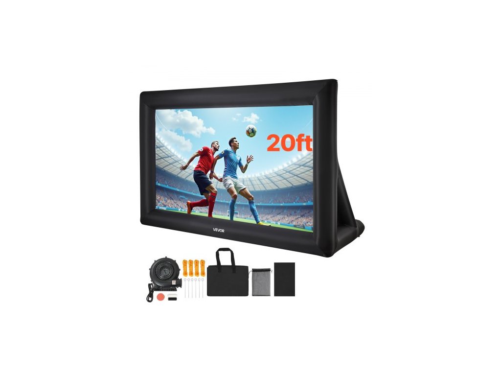 Nafukovací filmové plátno 20 stop, omyvatelné nafukovací projekční plátno z 600D s přenosným úložným vakem, snadno sestavitelný filmový projektor 16:9 pro venkovní použití na zahradu, domácí kino, tematickou párty, zábavu u bazénu