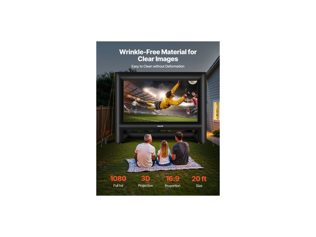 Nafukovací filmové plátno 20 stop, omyvatelné nafukovací projekční plátno z 600D s přenosným úložným vakem, snadno sestavitelná filmová projekce 16:9 pro venkovní zahradu, domácí kino, tematickou párty, zábavu u bazénu