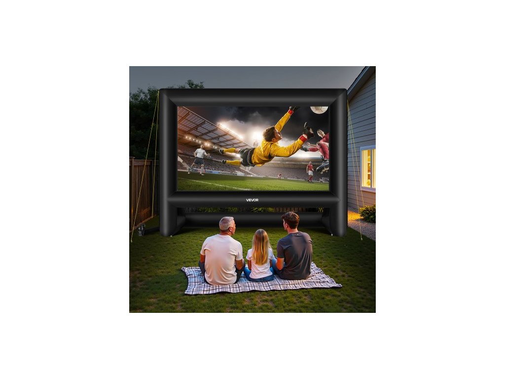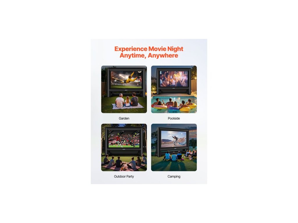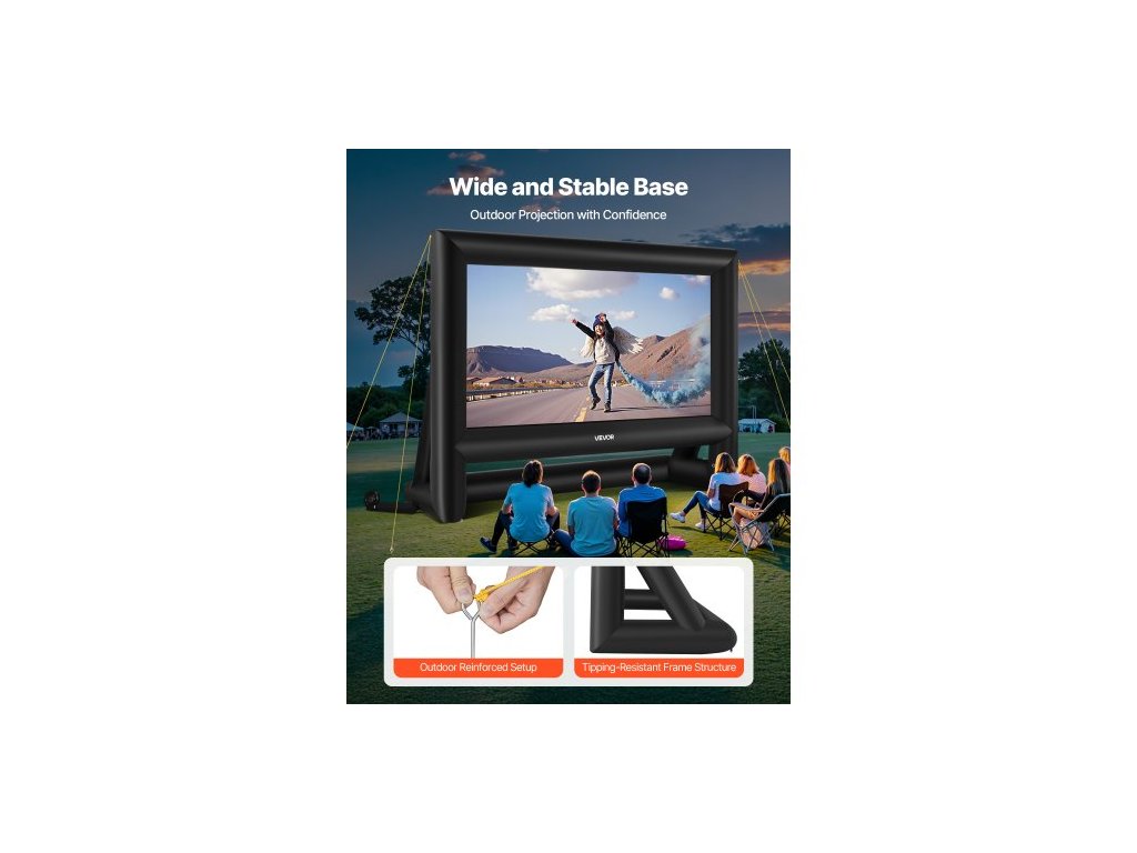 Nafukovací filmové plátno 6 m, omyvatelné nafukovací projekční plátno z 600D s přenosným úložným vakem, snadno nastavitelné promítání filmů 16:9 pro venkovní zahradu, domácí kino, tematickou párty, zábavu u bazénu