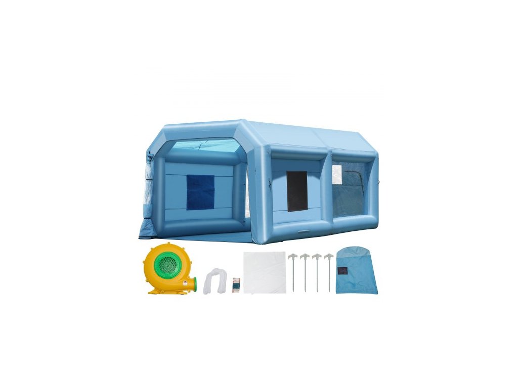 Nafukovací lakovací kabina , 21 x 13,5 x 9,8 stop/6,4 x 4,1 x 3 m, s výkonným ventilátorem 1100 W a systémem vzduchového filtru, přenosná lakovací kabina pro středně velká vozidla, lakování velkého nábytku