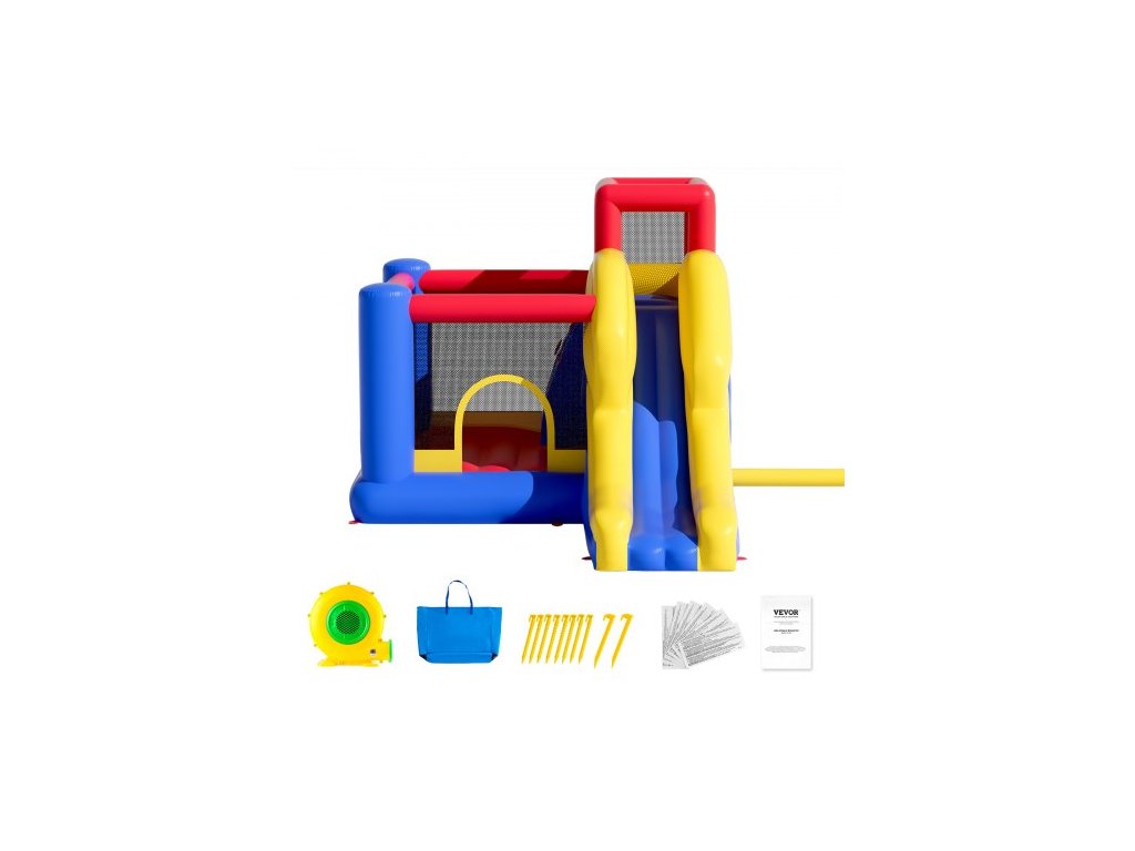 Nafukovací skákací hrad , venkovní vysoce kvalitní trampolína, skákací hrací hrad s fukarem, skluzavkou a úložným vakem, rodinný skákací hrad na zahradu, pro děti ve věku 3–8 let, 134x102x91 palců