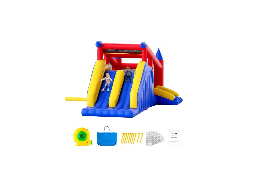 Nafukovací skákací hrad , venkovní vysoce kvalitní trampolína, skákací hrací hrad s fukarem, skluzavkou a úložným vakem, rodinný skákací hrad na zahradu, pro děti ve věku 3–8 let, 183x102x92 palců