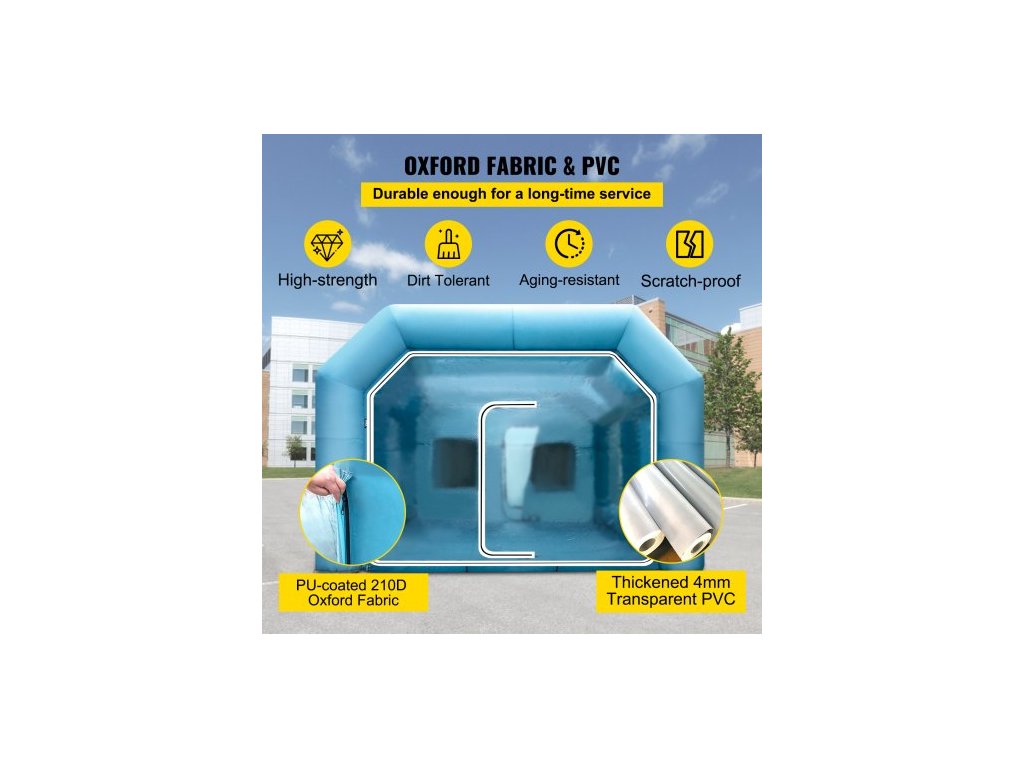 Nafukovací stan , 26x15x10 stop, nafukovací stan s lakovací kabinou, nafukovací stan s lakovací kabinou, obří pracovní stanice, oxfordská tkanina 210D se 2 ventilátory
