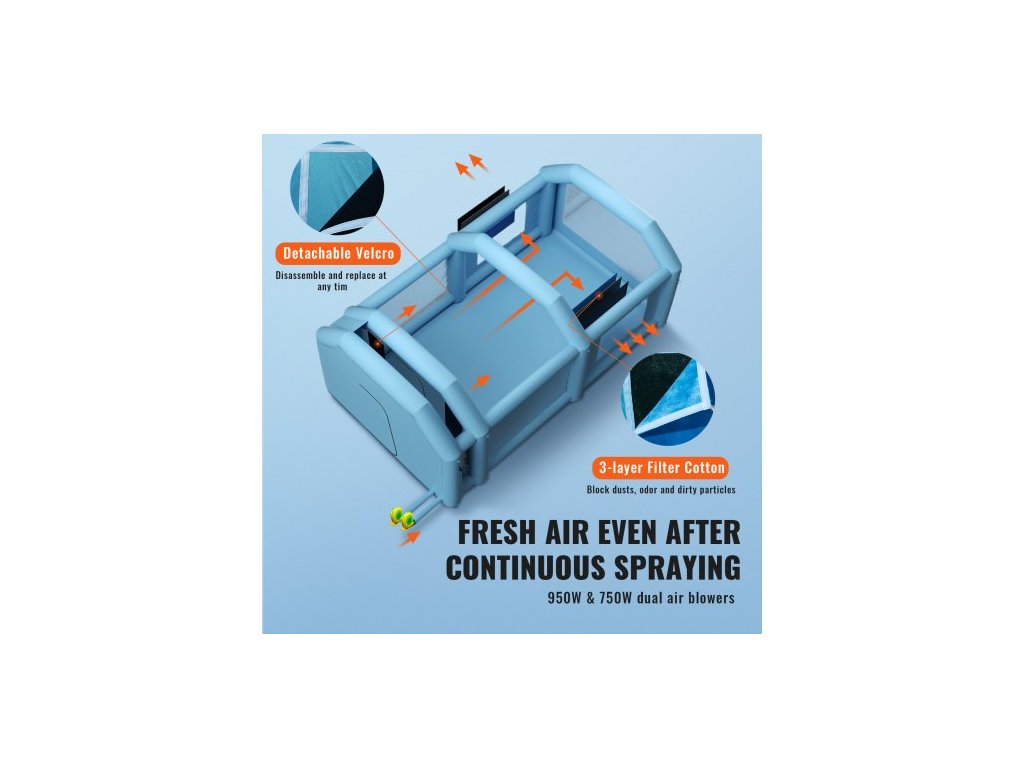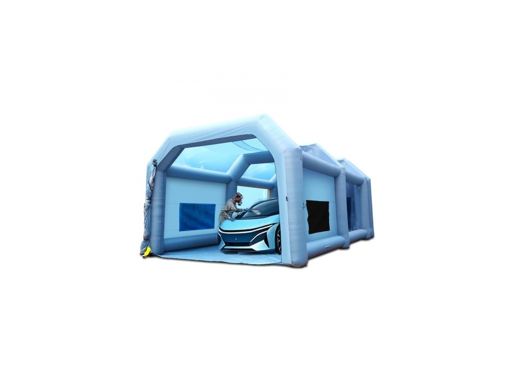 Nafukovací stříkací kabina , stan na lakování automobilů, 10 x 6 x 4 m, filtrační systém, 2 dmychadla