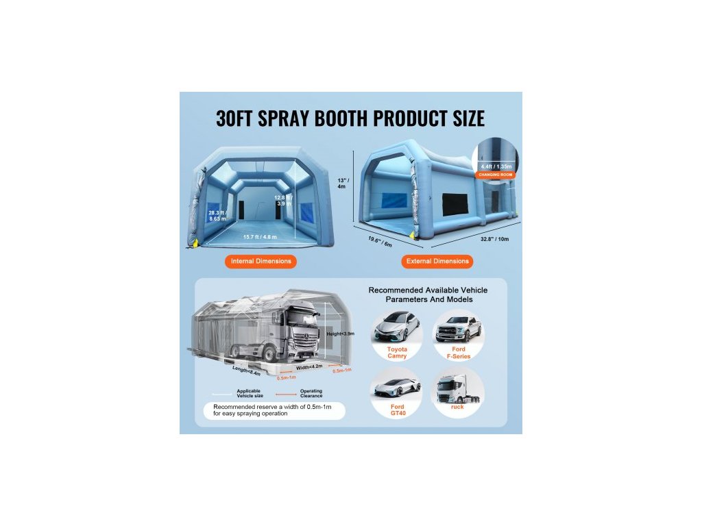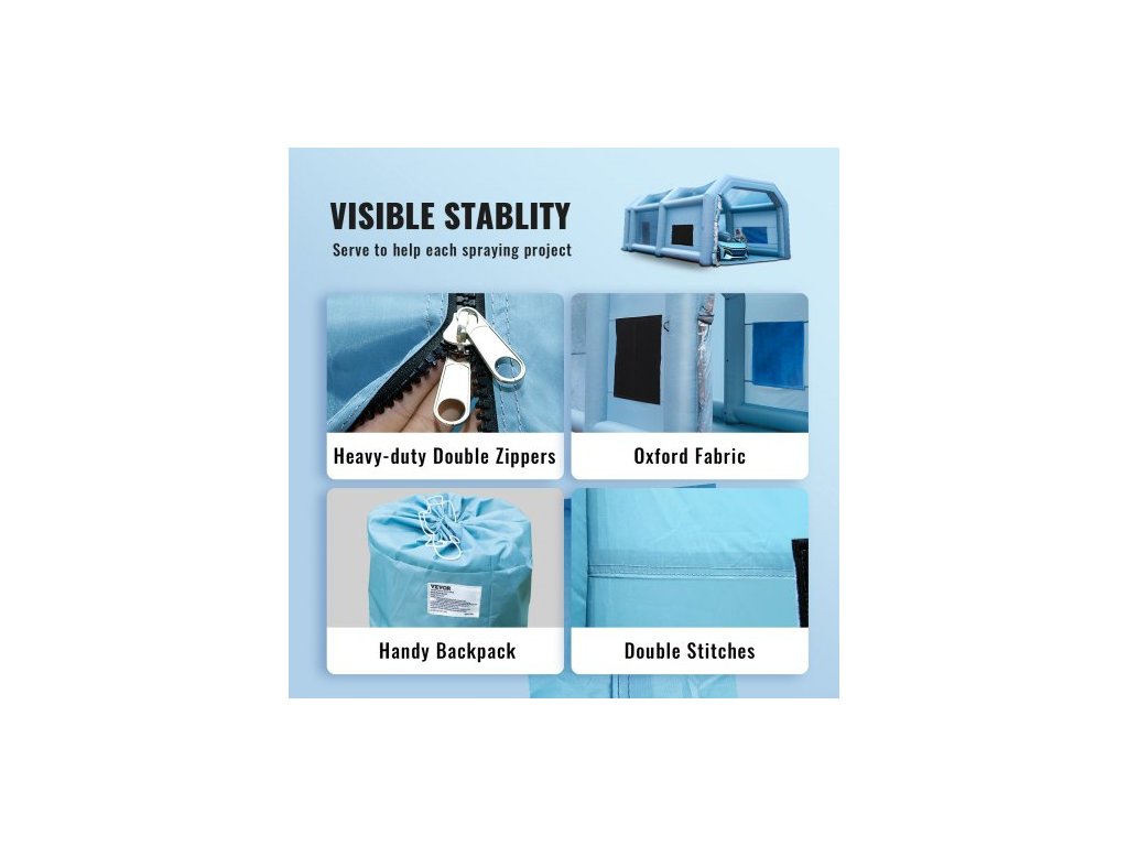 Nafukovací stan na lakování automobilů 10 x 6 x 4 m, filtrační systém, 2 ventilátory, zip odolný proti výbuchu, dvojité prošívání, látka 210D Oxford, vyměnitelná bavlna ve třech vrstvách, účinné ventilátory, praktický batoh, hladina hluku: <=75 dB, výkon ventilátoru: 950 W, počet filtračních okének: 6, výkon nafukovacího ventilátoru: 1100 W, barva: modrá, rozměry filtrační bavlny: 6,56 x 3,28 stop / 2 x 1 m, materiál: látka 210D Oxford, vnější rozměry: 32,8 x 19,68 x 13,12 stop / 10 x 6 x 4 m, objem izolační komory: 4,43 x 15,75 x 12,79 stop / 1,35 x 4,8 x 3,9 m, Číslo mobilního telefonu: YJSSX10, Čistá hmotnost: 67,6 kg, Vnitřní pracovní prostor: 8,65 x 4,8 x 3,9 m