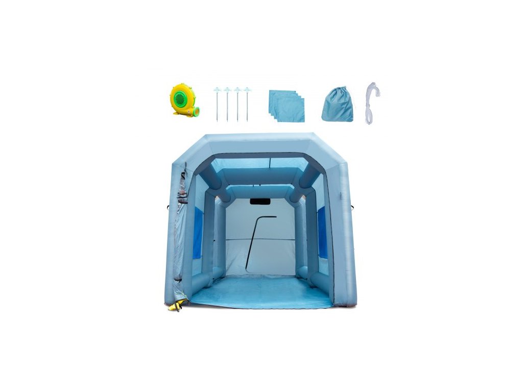 Nafukovací stříkací kabina , stan na lakování automobilů, 396 cm x 305 cm x 274 cm, filtrační systém, dmychadlo 950 W