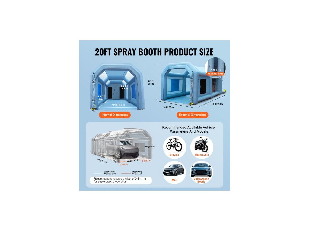 Nafukovací stan na lakování automobilů 610 cm x 305 cm x 244 cm Filtrační systém 2 ventilátory