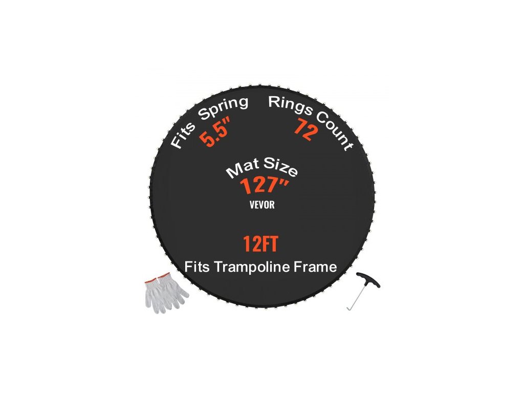 Náhradní podložka na trampolínu , skákací plocha pasuje na rám 3,6 m, univerzální skákací plocha pro kulatou trampolínu o průměru 3,6 m, zesílená podložka odolná proti UV záření s pružinovým nástrojem a odolnými V-kroužky, pasuje na délku249
