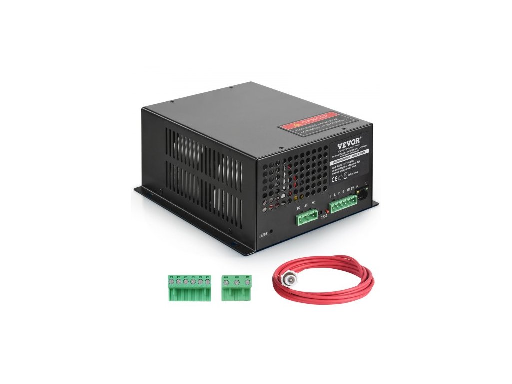 Napájecí zdroj pro CO2 laser , 80 W, Napájecí zdroj pro 80W laserovou trubici, Ochrana proti konstantnímu proudu, Ochrana proti přerušení obvodu, Rychlý odvod tepla, Kompatibilní s laserovými gravírkami a řezacími stroji různých značek