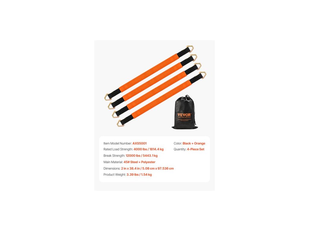Jmenovitá nosnost: 4 000 liber / 1 814,4 kg, Pevnost v tahu: 12 000 liber / 5 443,1 kg, Barva: Černá + oranžová, Číslo modelu položky: AXS5001, Hmotnost výrobku: 3,39 liber / 1,54 kg, Množství: Sada 4 kusů, Rozměry: 2 palce x 38,4 palce / 5,08 cm x 97,536 cm, hlavní materiál: ocel 45# + polyester