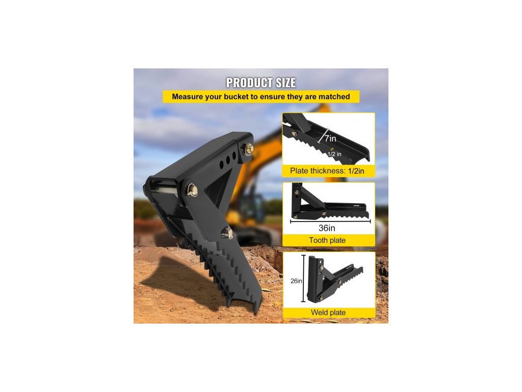 Nástavce pro bagr , 36palcová nastavitelná extrémně přivařovací svorka pro bagr, 1/2palcová zubová konstrukce, ocelový plech s tloušťkou 16 mm, montáž a šroubování