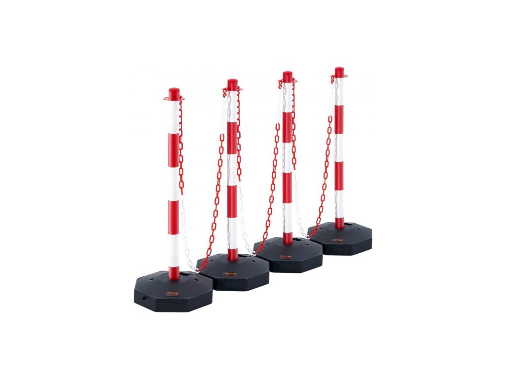 Celkové množství produktů: 4,Rozměry základny: 11,22 x 11,22 palce / 285 x 285 mm,Barva: Červenobílá,Číslo modelu položky: CC-F03-N-RW-2PCS-2.5M,Vstřikování písku: 12 lbs / 5,4 kg,Celková délka řetězu: 8 ft,Hmotnost základny: 0,66 lbs / 0,3 kg před naplněním,Hmotnost jednoho kusu: 1,1 lbs / 0,5 kg,Rozměry produktu: 33,86 x 11,22 x 11,22 palce / 860 x 285 x 285 mm, Hlavní materiál: PE, PP, Vstřikování vody: 8,8 lbs / 4 kg