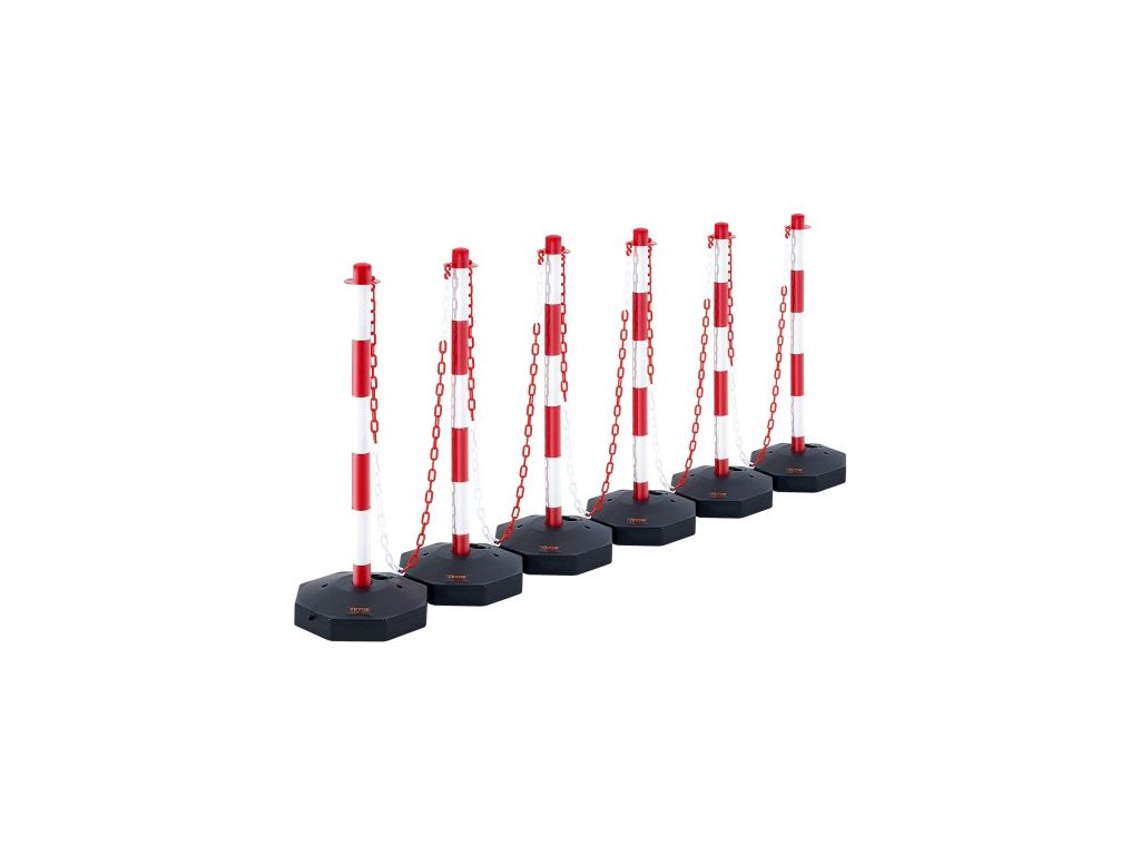 Celkové množství produktů: 6,Rozměry základny: 11,22 x 11,22 palce / 285 x 285 mm,Barva: Červenobílá,Číslo modelu položky: CC-F03-N-RW-2PCS-2.5M,Celková délka řetězu: 6,6 stop,Hmotnost základny: 0,66 lbs / 0,3 kg před naplněním,Hmotnost jednoho kusu: 1,1 lbs / 0,5 kg,Rozměry produktu: 33,86 x 11,22 x 11,22 palce / 860 x 285 x 285 mm, Hlavní materiál: PE, PP