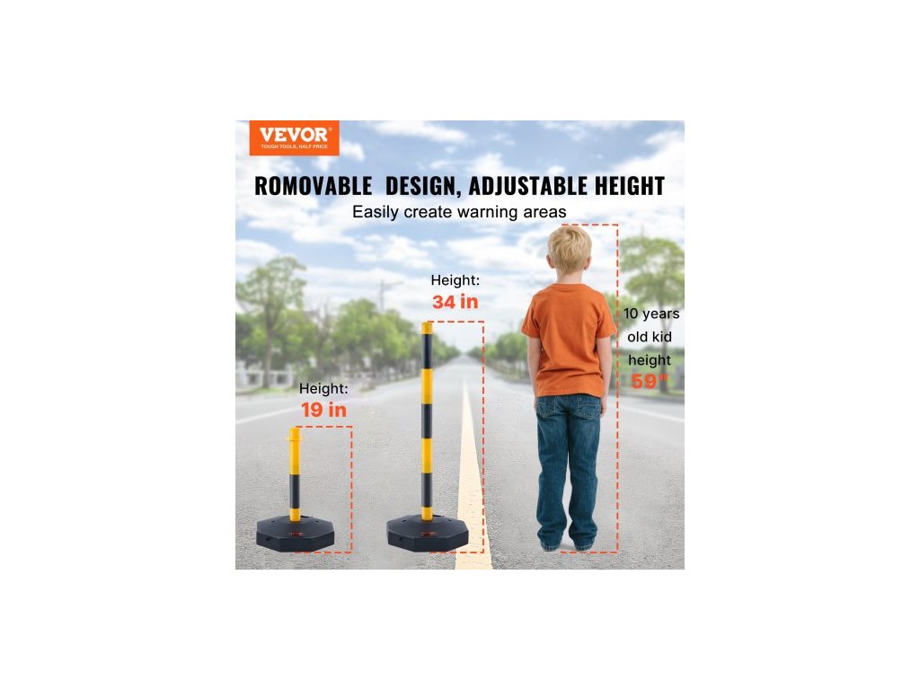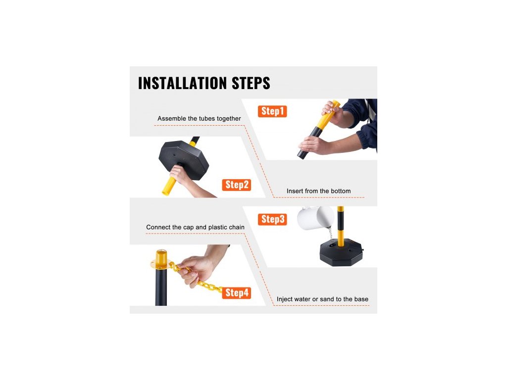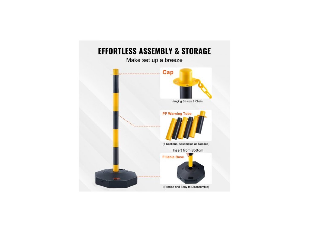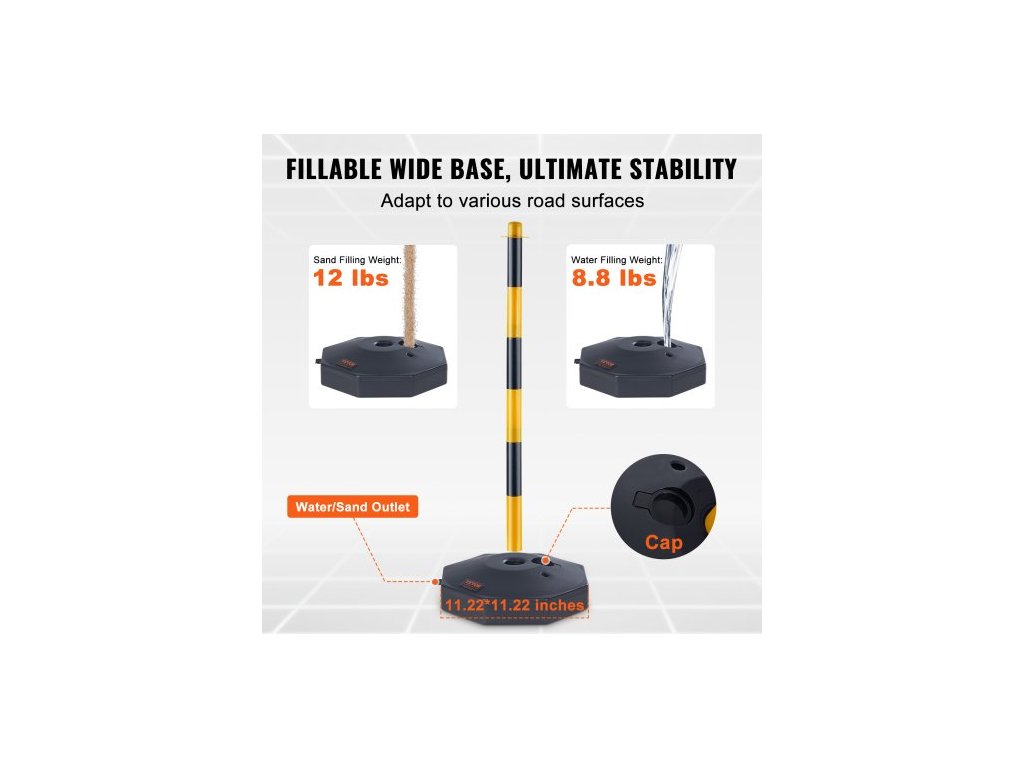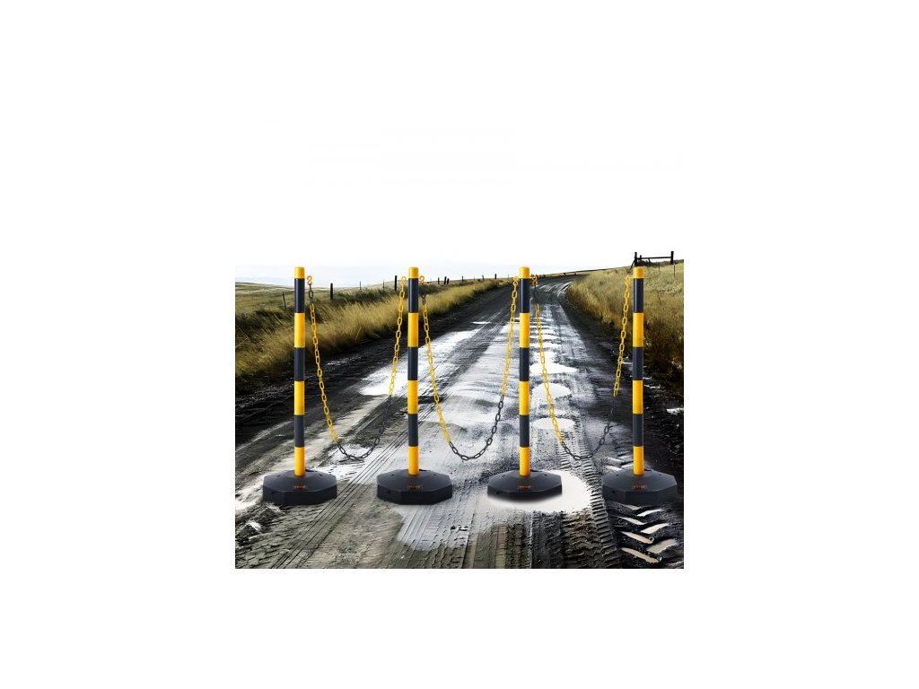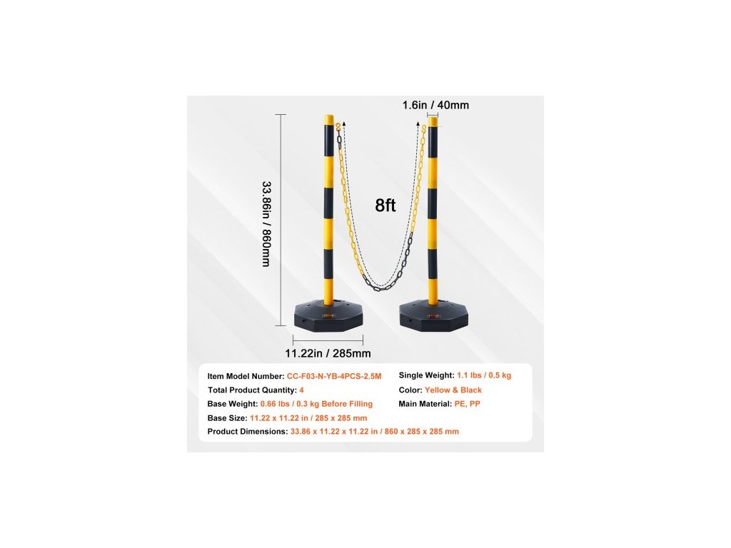 Celkové množství produktů: 4,Rozměry základny: 11,22 x 11,22 palce / 285 x 285 mm,Barva: Žluto-černá,Číslo modelu položky: CC-F03-N-RW-2PCS-2.5M,Vstřikování písku: 12 liber / 5,4 kg,Celková délka řetězu: 8 stop,Hmotnost základny: 0,66 liber / 0,3 kg před naplněním,Hmotnost jednoho kusu: 1,1 liber / 0,5 kg,Rozměry produktu: 33,86 x 11,22 x 11,22 palce / 860 x 285 x 285 mm, Hlavní materiál: PE, PP, Vstřikování vody: 8,8 lbs / 4 kg