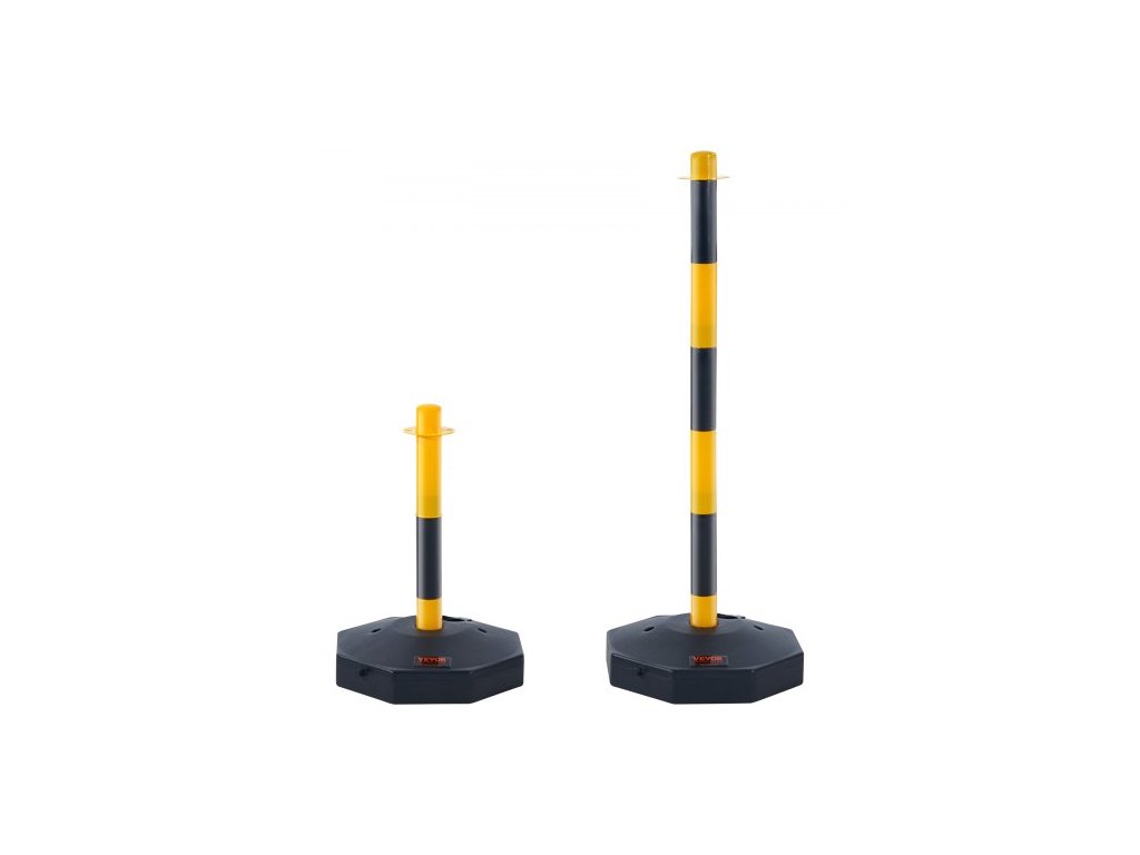 Nastavitelné dopravní sloupky s vyznačovacími kužely, balení 4 kusů, bezpečnostní dopravní bariéra s plnitelnou základnou, řetěz 8 stop, pro řízení dopravy, varování, parkoviště, stavební výstražné signály, silnice, žluto-černé