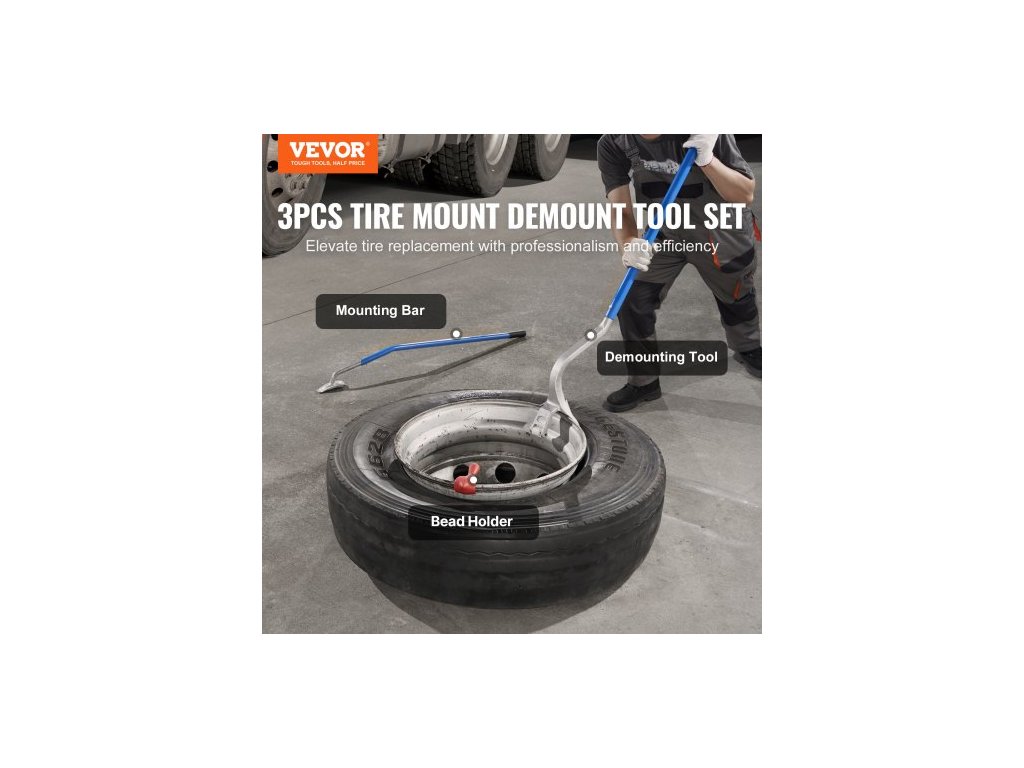 Nástroj pro demontáž montáže pneumatik , ruční ocelový nástroj pro demontáž montáže pneumatik 571-622 mm, s extra držákem patky, odlamovač patky pro bezdušová vozidla, 3dílný nástroj pro výměnu pneumatik, oranžový