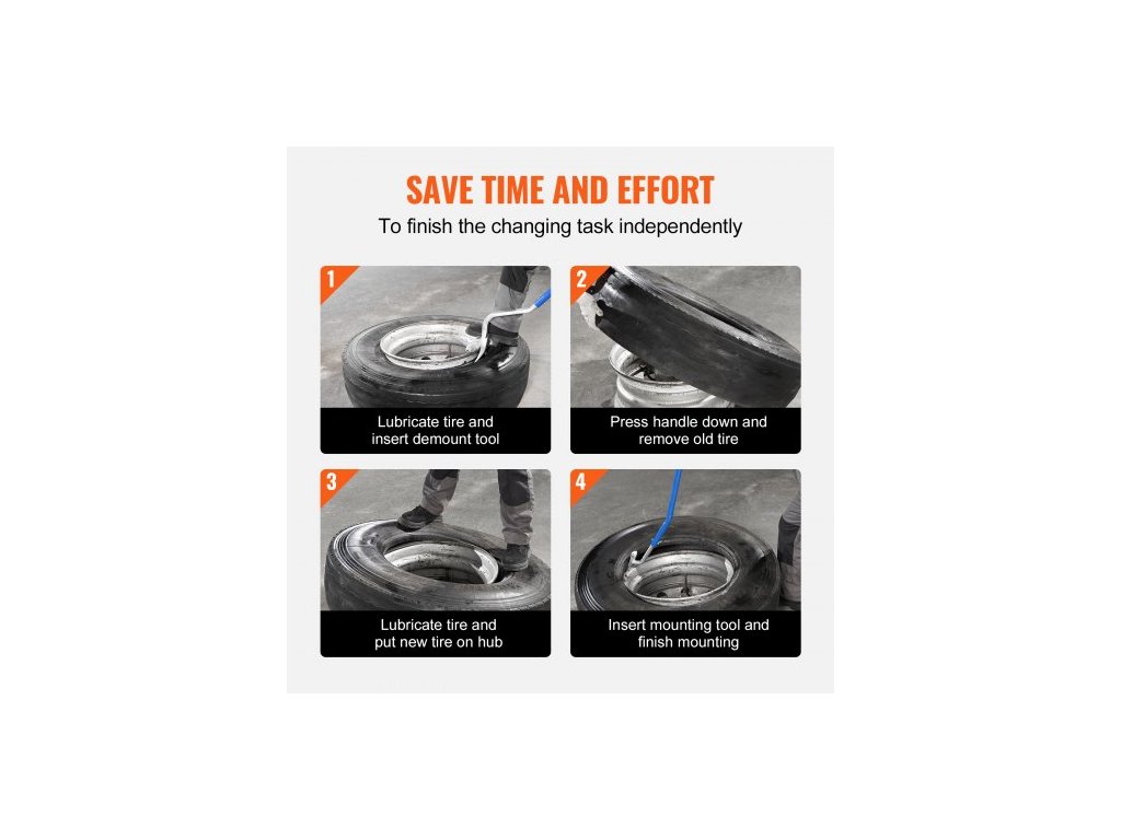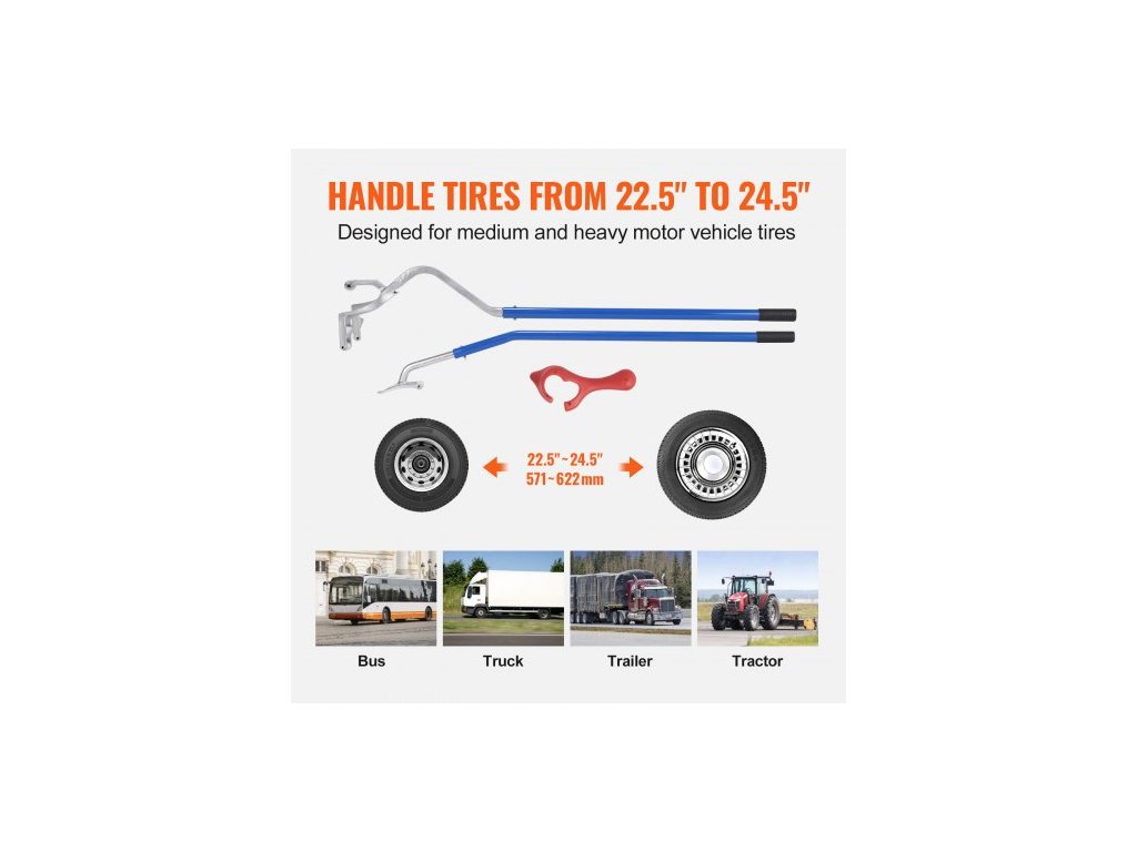 Nástroj pro demontáž montáže pneumatik , Ruční ocelový nástroj pro demontáž montáže pneumatik 571-622 mm, s extra držákem patky, bezdušový odlamovač patky pro nákladní vozidla, 3 ks nástrojů pro výměnu pneumatik, oranžová