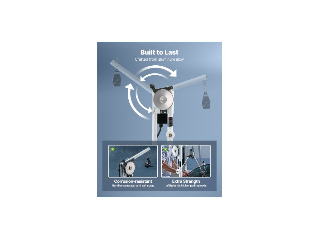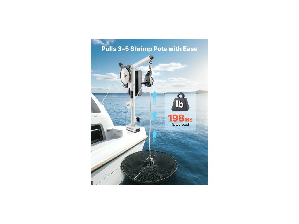 Naviják Line Hauler, 12V DC 1200W, nosnost 90 kg, rychlost lana 35 m/min, rotace 360° a odolnost proti korozi, lapač krabů, krevet a humrů