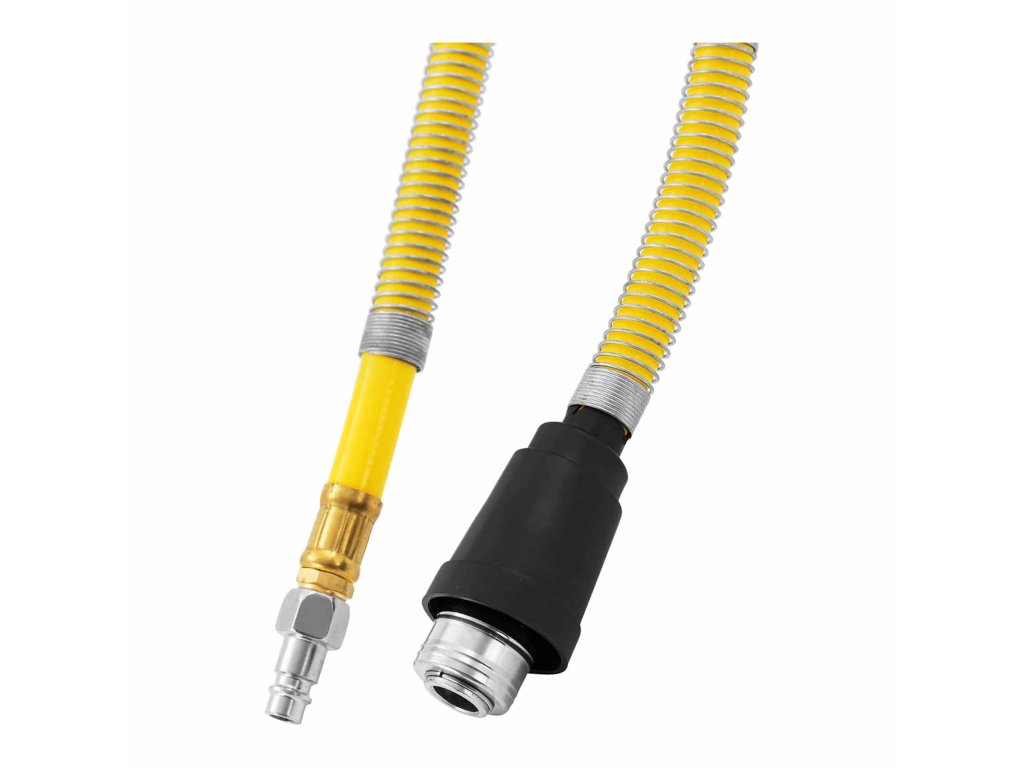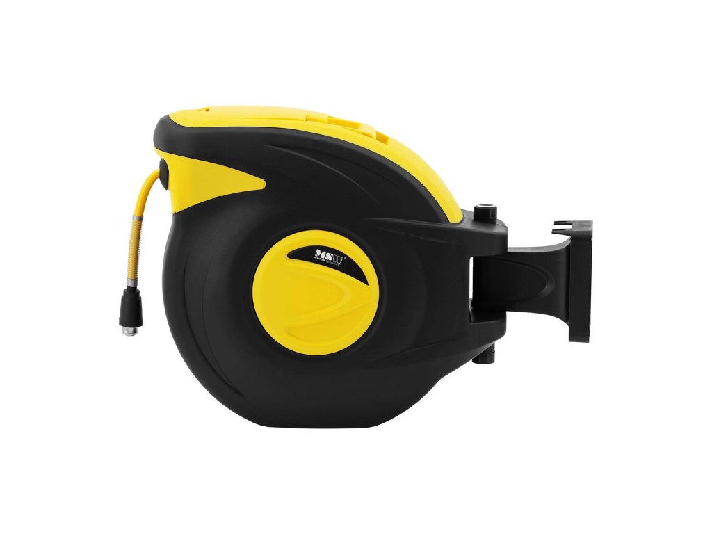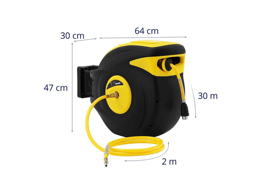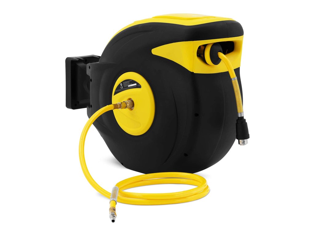 Hadice je vyrobena z odolného PVC a vydrží až 18 barů. Naviják na vzduchovou hadici můžete používat i při extrémních teplotách -5 - 45. °C bez jakýchkoli problémů. Vzduchová přípojka 1/4" je vhodná pro většinu běžného pneumatického nářadí.
