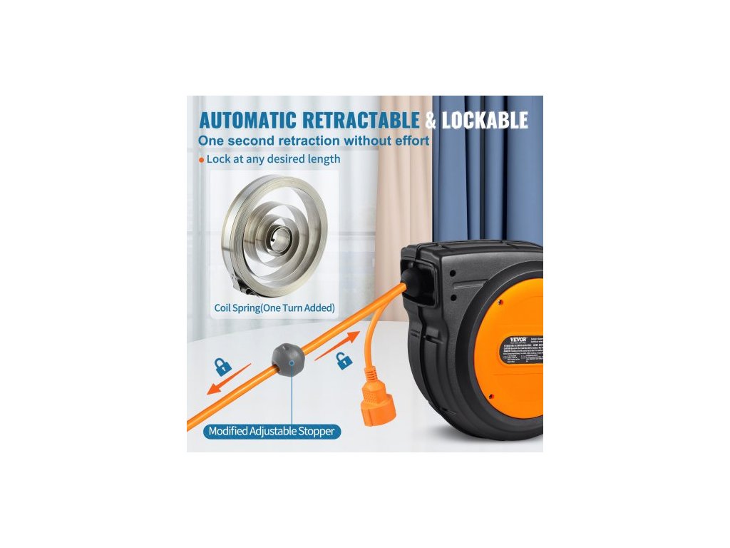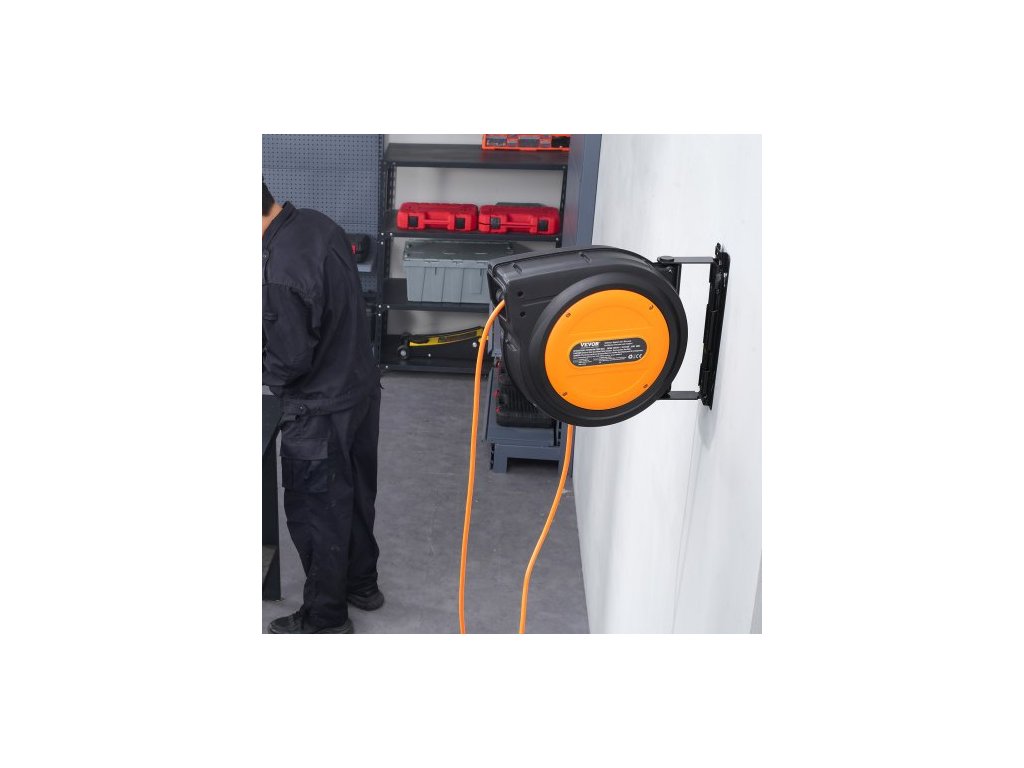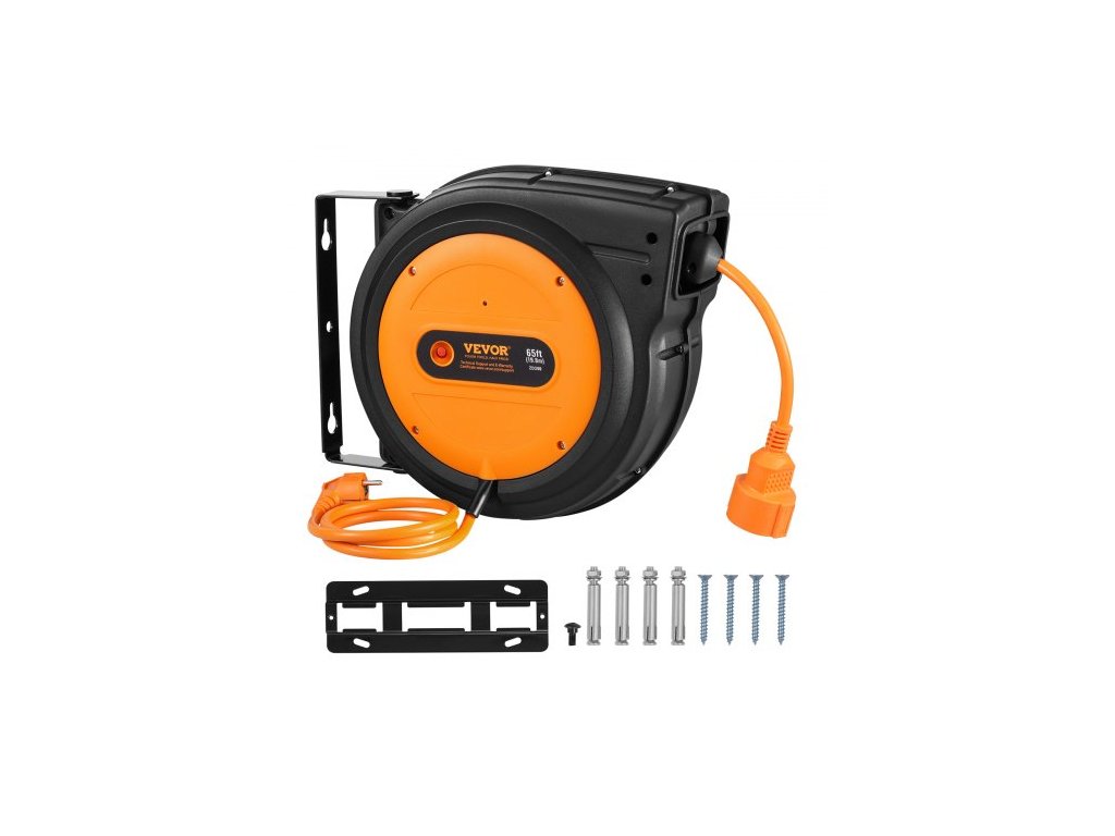 Navíjecí prodlužovací kabel na cívce, 19 m, 1600W odolný navíjecí napájecí kabel s přívodním kabelem o délce 1 m, ochrana proti přehřátí, PP pouzdro, otočný držák o 180° pro montáž na strop nebo na zeď
