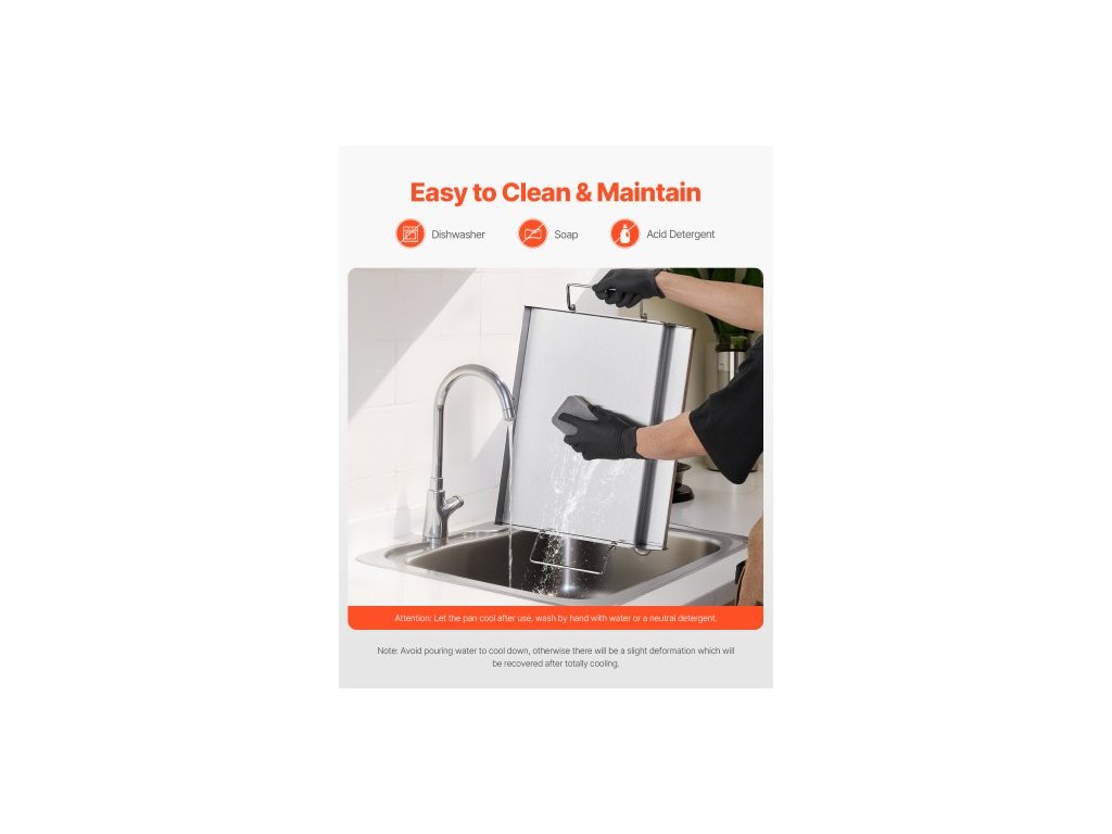 Teplotní odolnost: Max. 500 °F / 260 °C,Barva: Původní barva oceli,Číslo modelu položky: HH-SP010,Hmotnost výrobku: 10 lbs / 4,59 kg ±5 %,Materiál: Nerezová ocel,Plocha pro vaření: 17"x11" / 425x270 mm