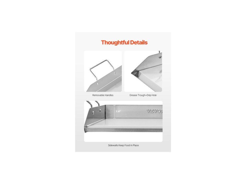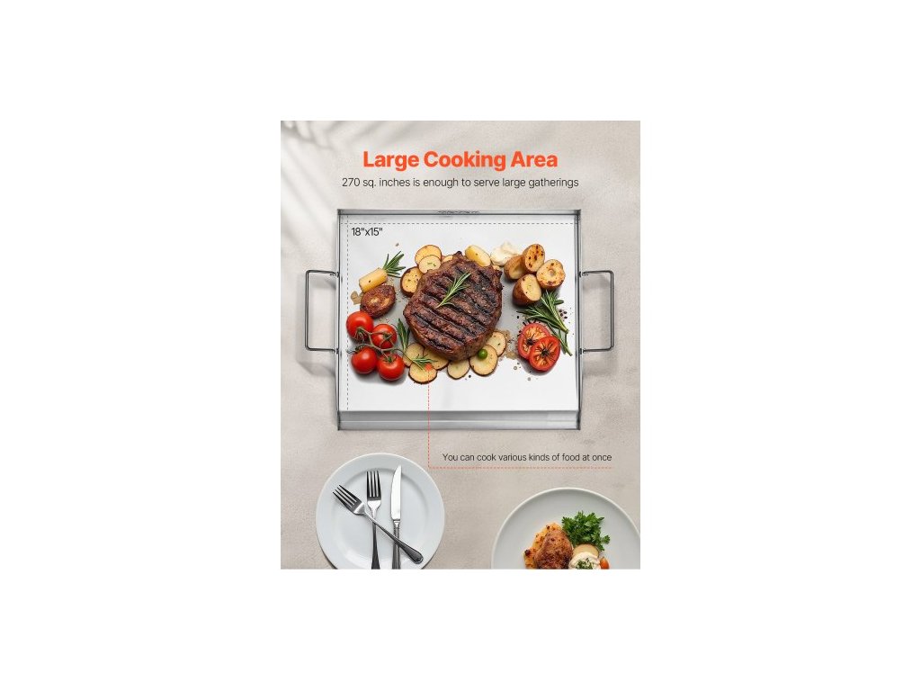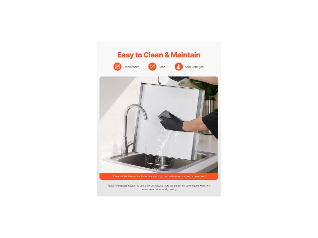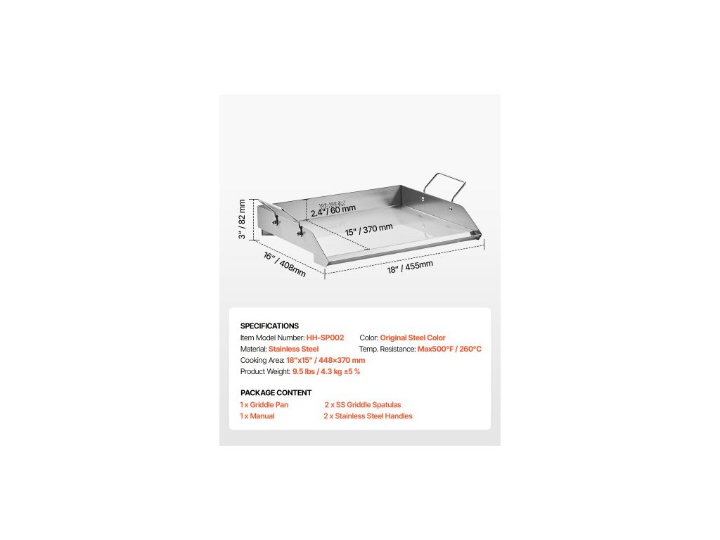 Teplotní odolnost: Max. 500 °F / 260 °C,Barva: Původní barva oceli,Číslo modelu položky: HH-SP002,Hmotnost výrobku: 9,5 lbs / 4,30 kg ±5 %,Materiál: Nerezová ocel,Plocha pro vaření: 18"x15" / 448x370 mm