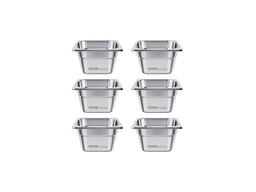 Nerezové parní pánve pro hotely, velikost 1/6 x hloubka 100 mm, stolní parní pánev o objemu 1,7 l, odolná proti zasekávání, restaurační potřeby, opakovaně použitelné, nerezové, pro domácnost, párty, restauraci, hotel, bufet, balení po 6 kusech