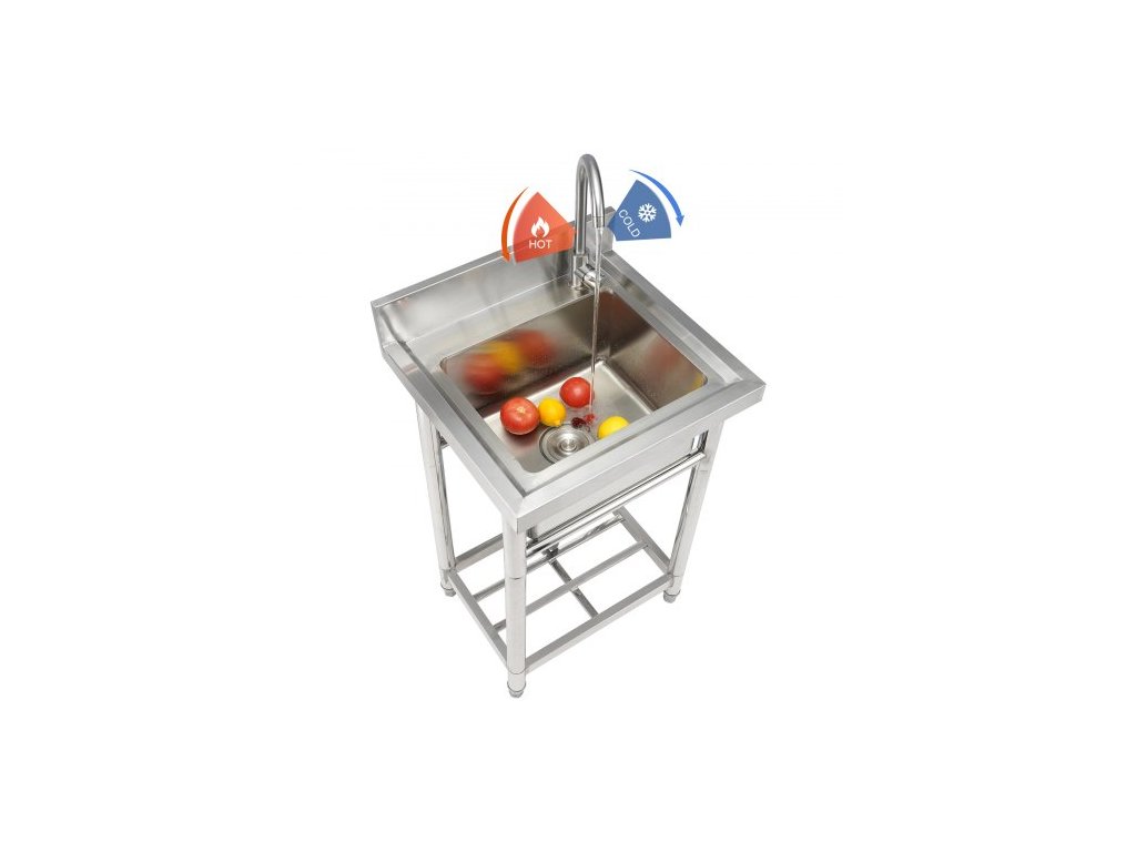 Nerezový dřez , volně stojící malý dřez s 1 přihrádkou, včetně baterie a nohou, 40,6 x 33 x 22,1 cm, komerční jednodřezový dřez pro garáž, restauraci, kuchyň, prádelnu, certifikace NSF