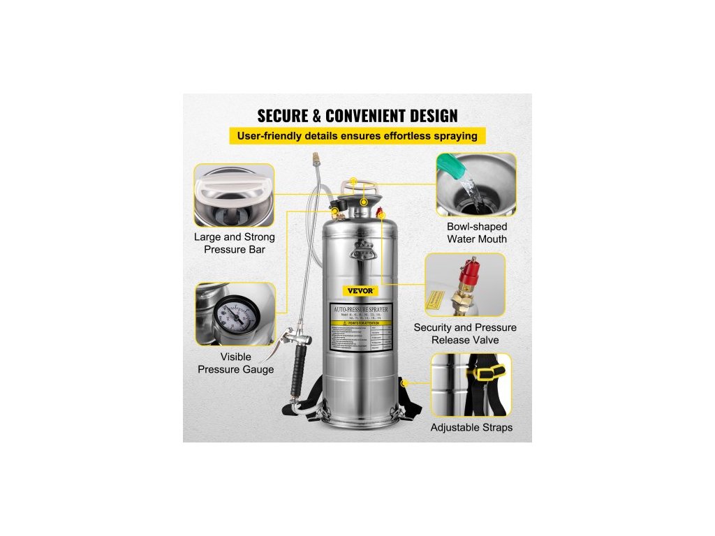 Nerezový postřikovač 12L pro domácnost, zahradničení a čištění podlah, vhodný pro současné potřeby průmyslu, zemědělství, obchodu, lékařství a dalších odvětví.