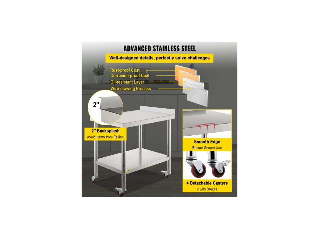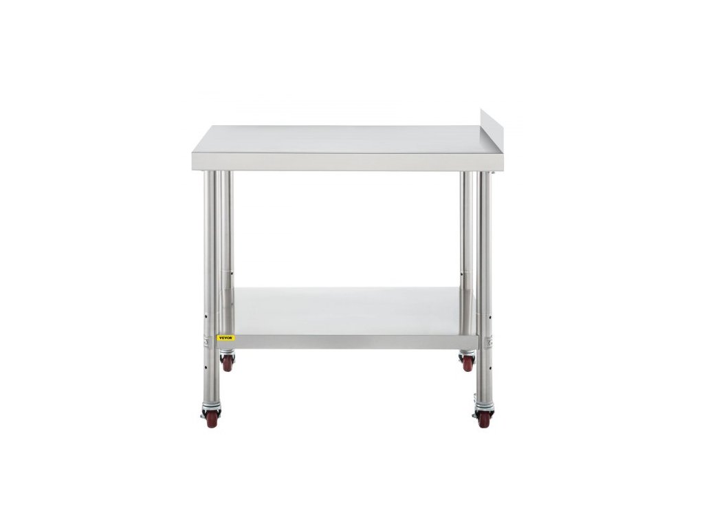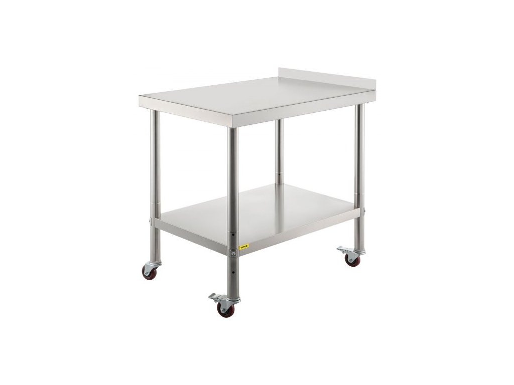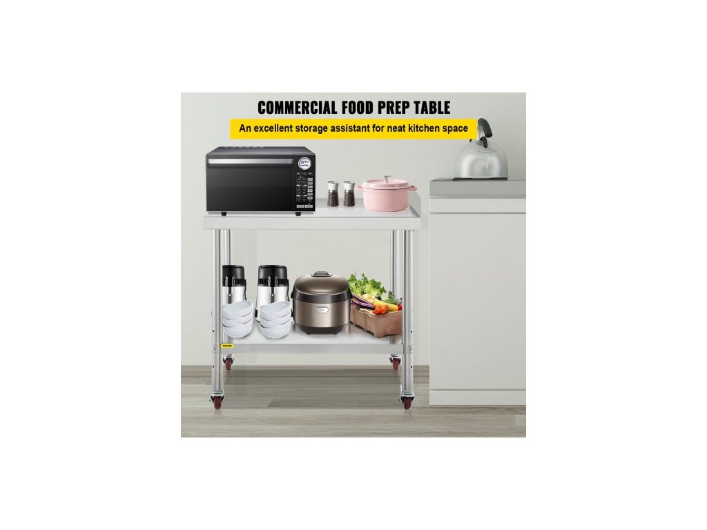 Nerezový pracovní stůl , 24 x 15 x 35 palců, nosnost 440 liber, robustní kovový pracovní stůl s obkladem, nastavitelnou spodní policí a 4 kolečky, komerční pracovní stanice pro kuchyňskou restauraci