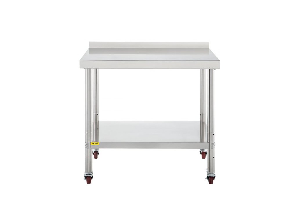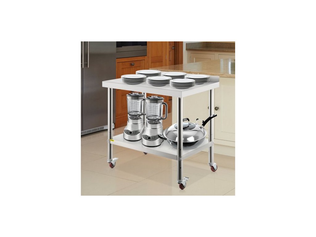 Nerezový pracovní stůl , 30 x 24 x 35 palců, nosnost 440 liber, robustní kovový pracovní stůl s obkladem, nastavitelnou spodní policí a 4 kolečky, komerční pracovní stanice pro kuchyňskou restauraci